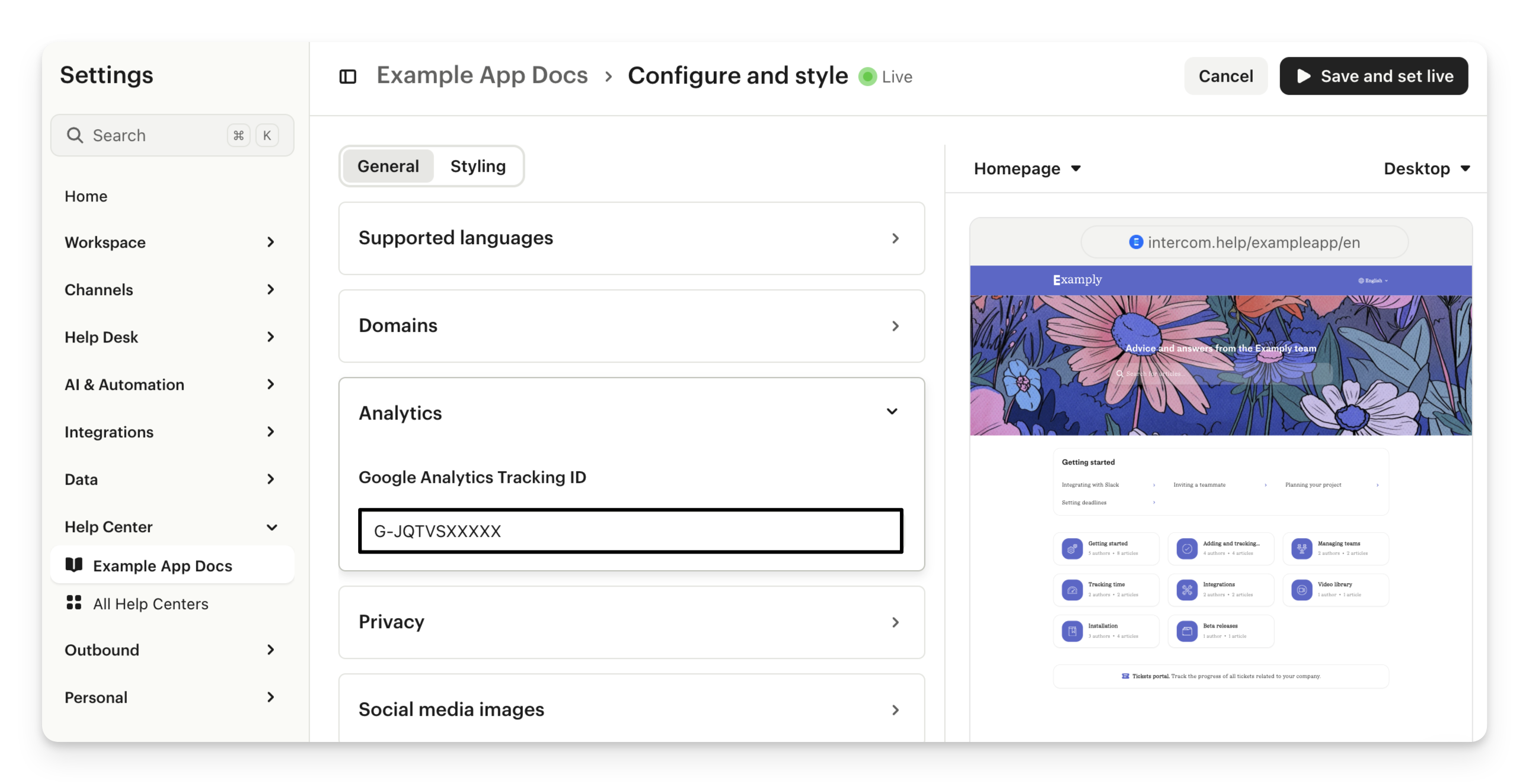 It's easy to integrate Google Analytics with your Help Center - you just need your Google Analytics tracking ID or GA4 Measurement ID.