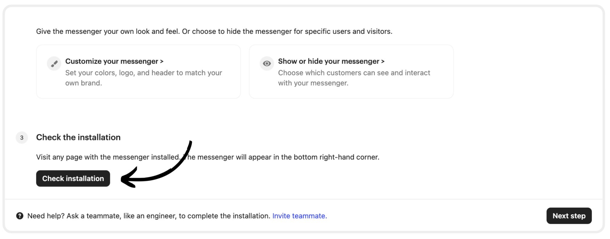 If needed, you can ask a teammate (like an engineer) to complete the installation. Simply click Invite teammate.