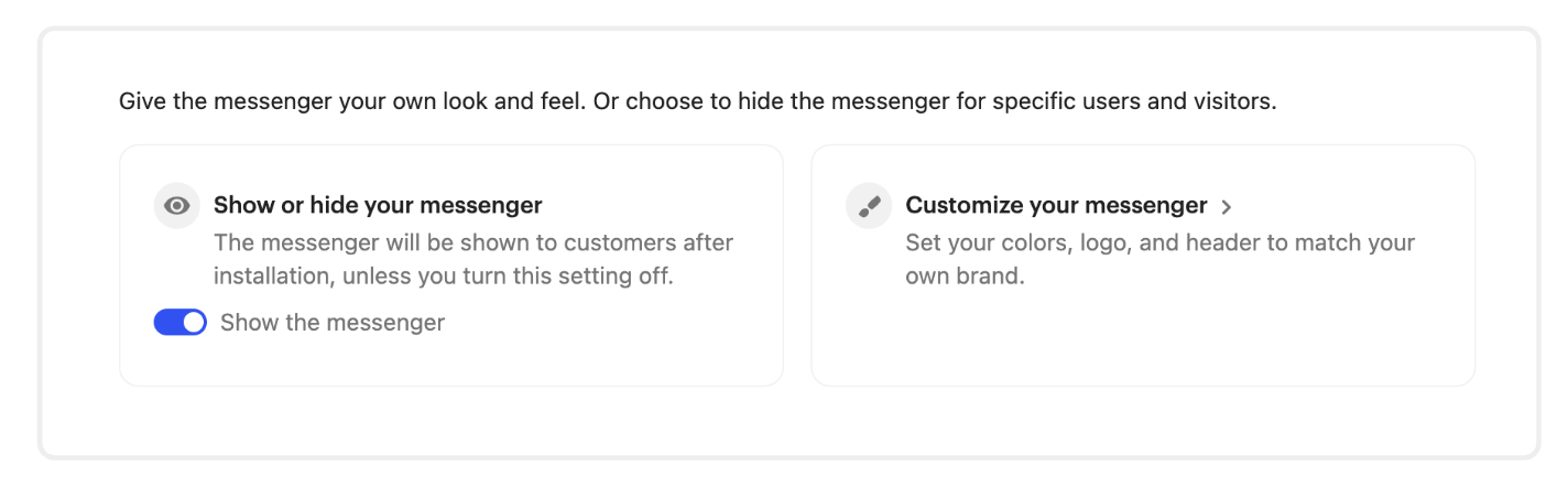 The first option allows you to choose if you want to show or hide the messenger for your website’s audience prior to launching. Otherwise, it defaults to showing the messenger.