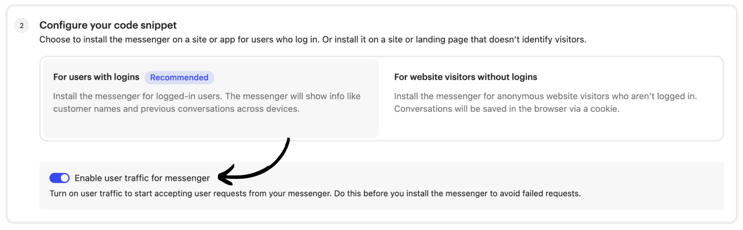 Users with logins - Install the Messenger for logged-in users. The messenger will show information like customer names and previous conversations across devices.