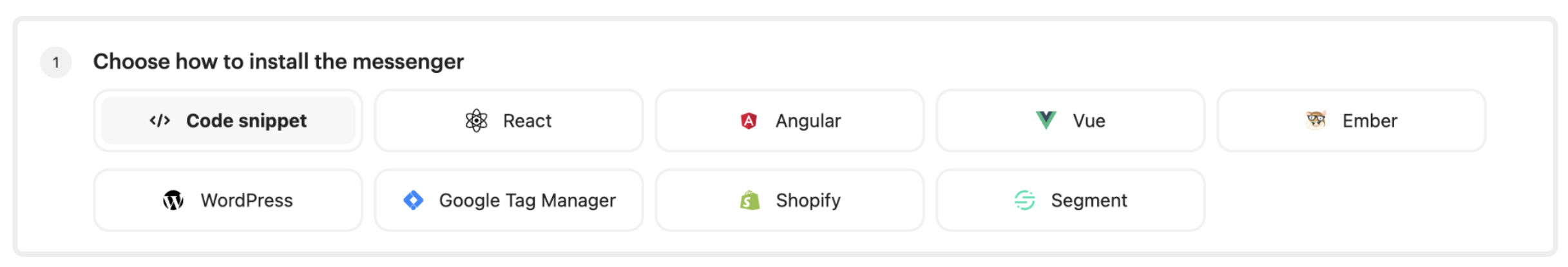 If you selected Code snippet, React, Angular, Vue, Ember or Shopify as the installation method, you'll have the choice of whether to complete the installation for: