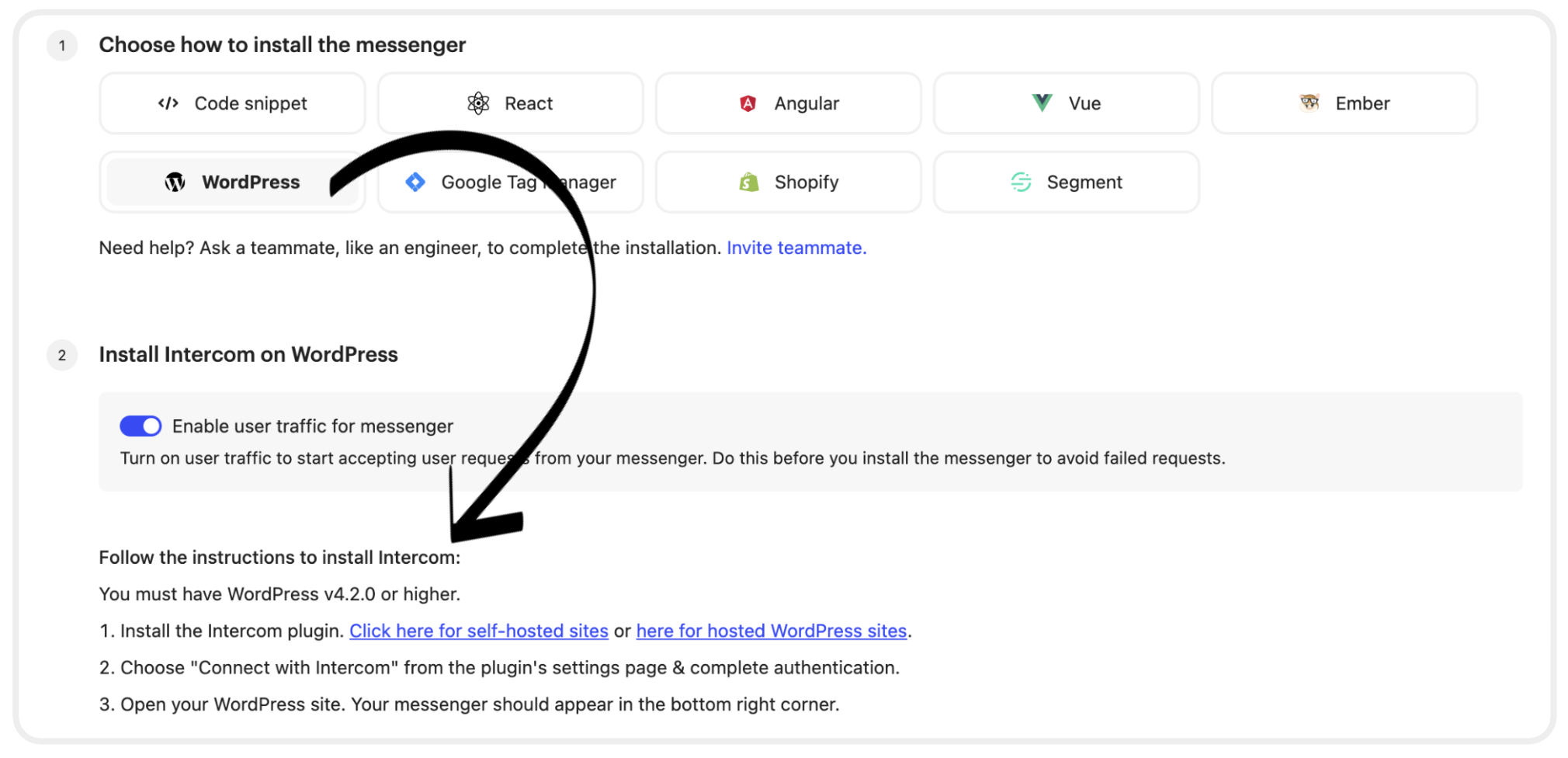 If needed, you can ask a teammate (like an engineer) to complete the installation. Simply click Invite teammate.