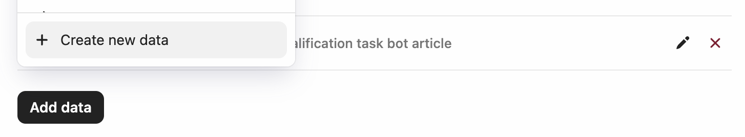 Scroll down and click Add data then + Create new data from the dropdown menu.