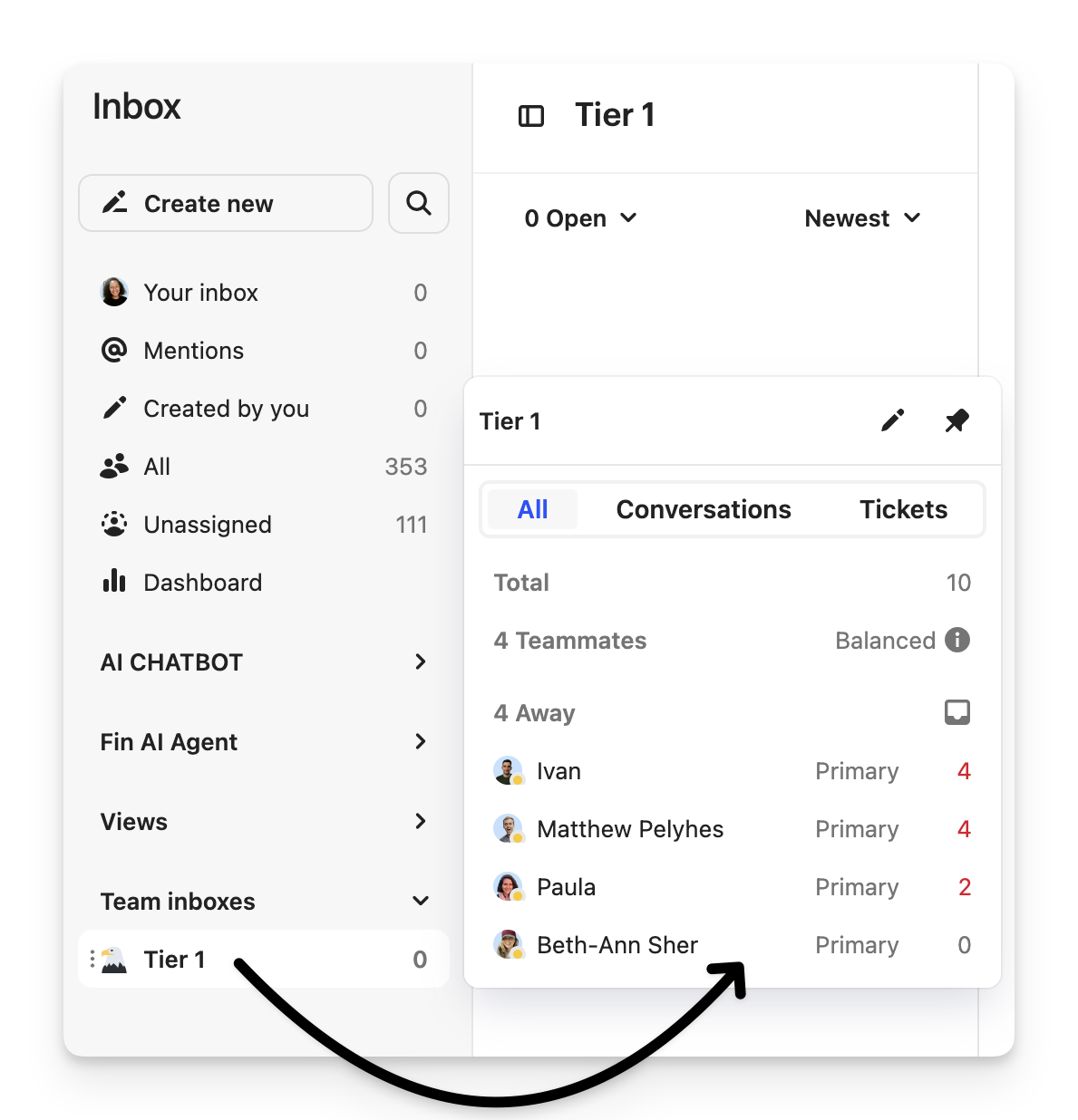 Occasionally, a team can end up with no teammates - for instance, when teammates are off-boarded or after a downgrade in your subscription. If conversations are routed to an empty team through a workflow or automated assignment round-robin or balanced assignment), they won’t reach an active teammate because there’s nobody to assign them to.