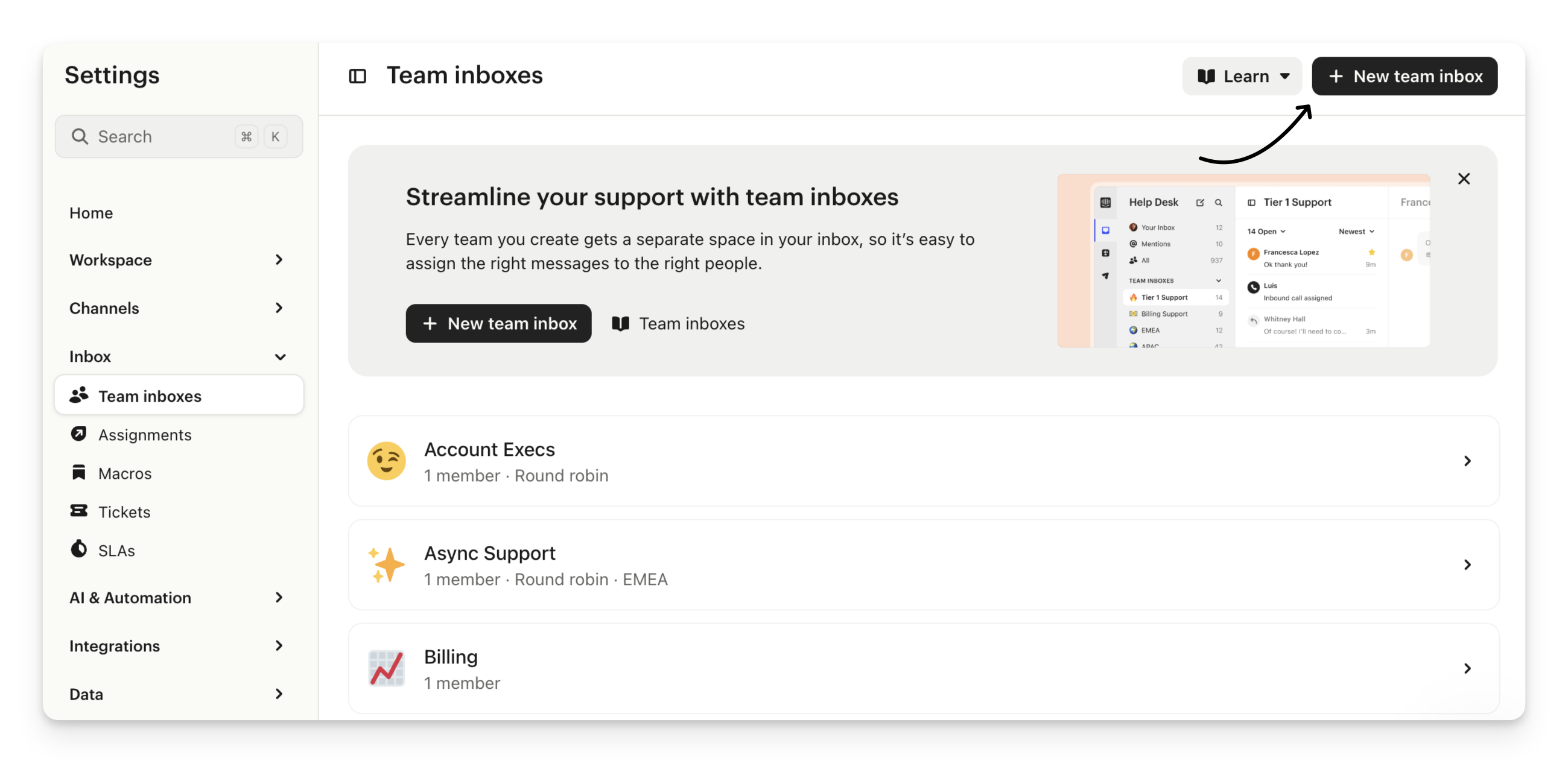 Using team inboxes in Intercom