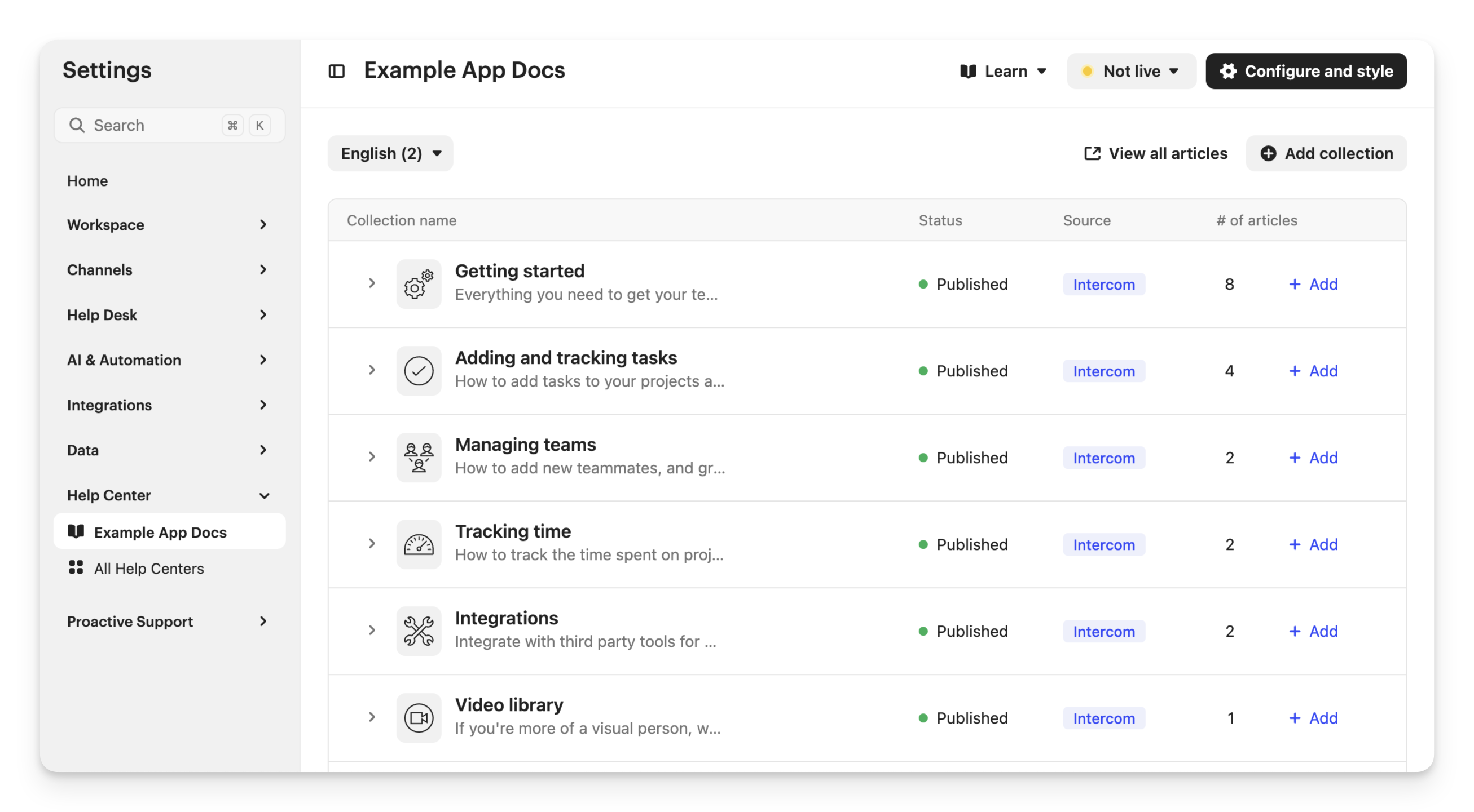 For articles to appear in your Help Center, you’ll need to add them to a collection. Collections help you keep your Help Center organized and make it easier for your customers to find the information they need.