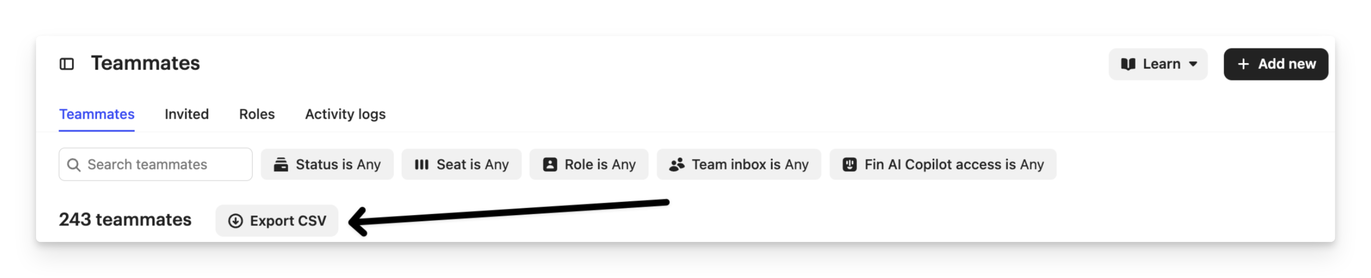 You can export the full list of teammates to a CSV file, or a filtered list if you apply a filter in the UI. The CSV file columns are: