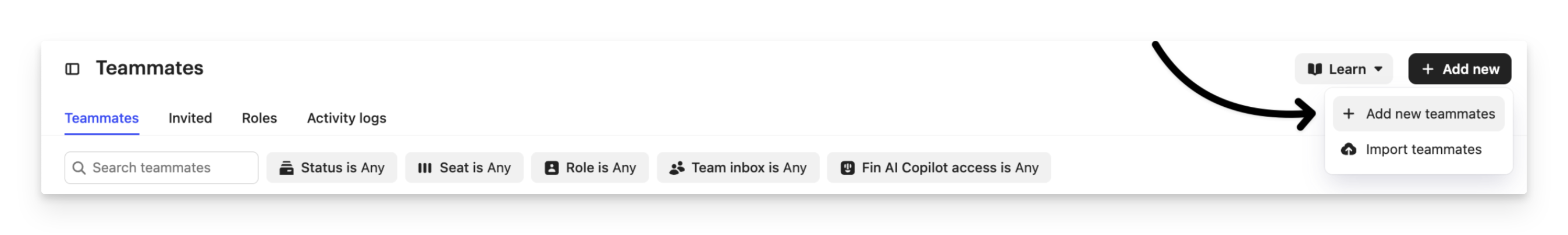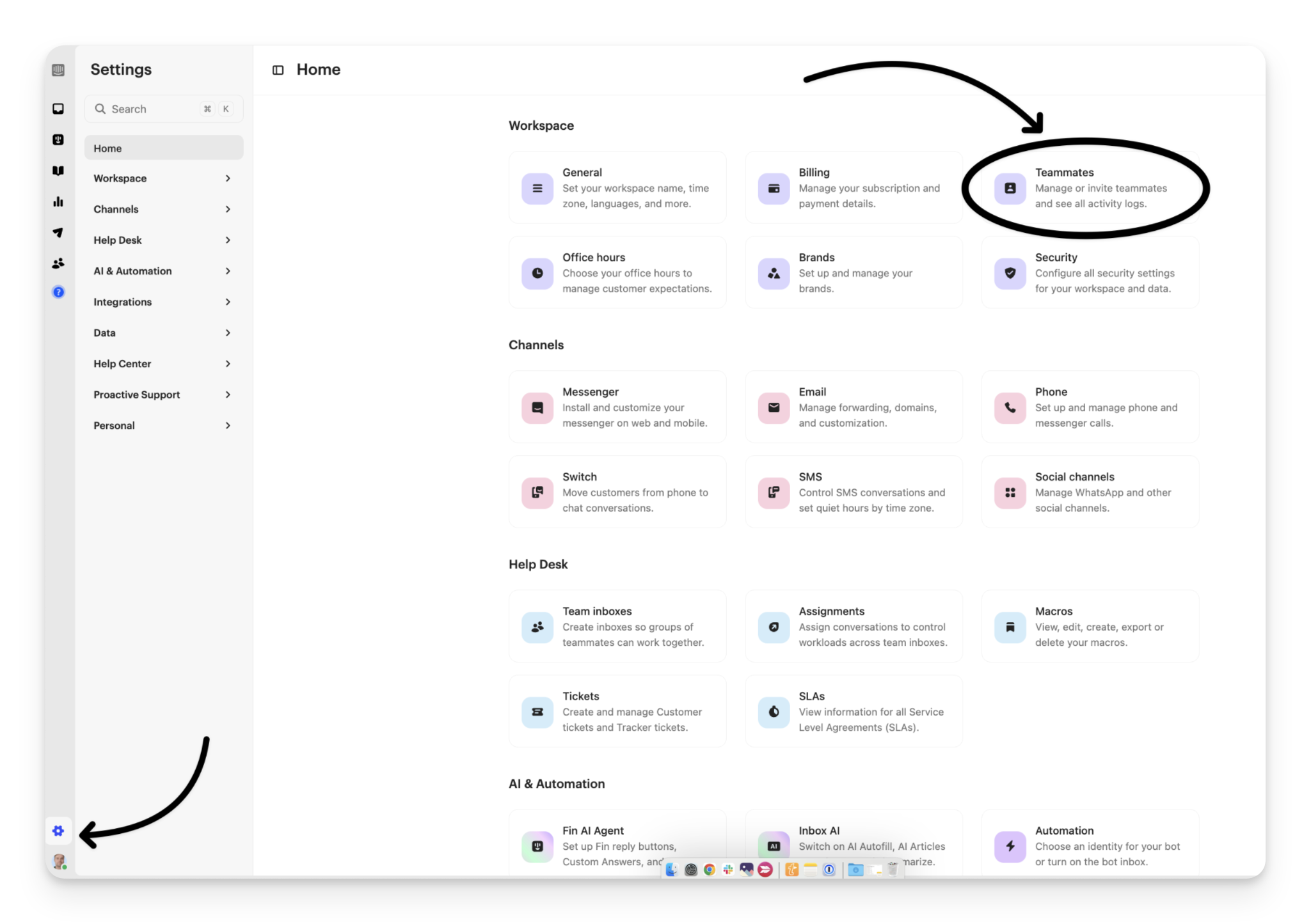 To invite new teammates to join your workspace, open the Settings page and within the Workspace tab, select Teammates: