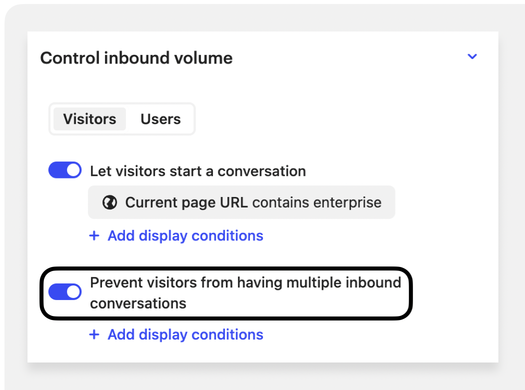 Use the Prevent multiple inbound conversations setting to reduce this behavior. This can be targeted to only apply to visitors or users who match certain data criteria.