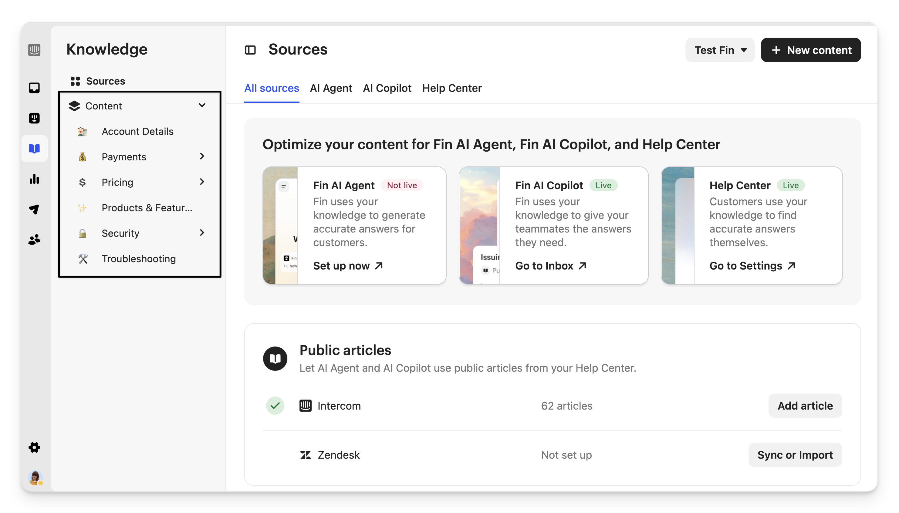 Once in Intercom, you'll be able to use these articles to power Fin AI Agent and Fin AI Copilot, as well as making them accessible in the Inbox for improved self-serve performance and team efficiency.