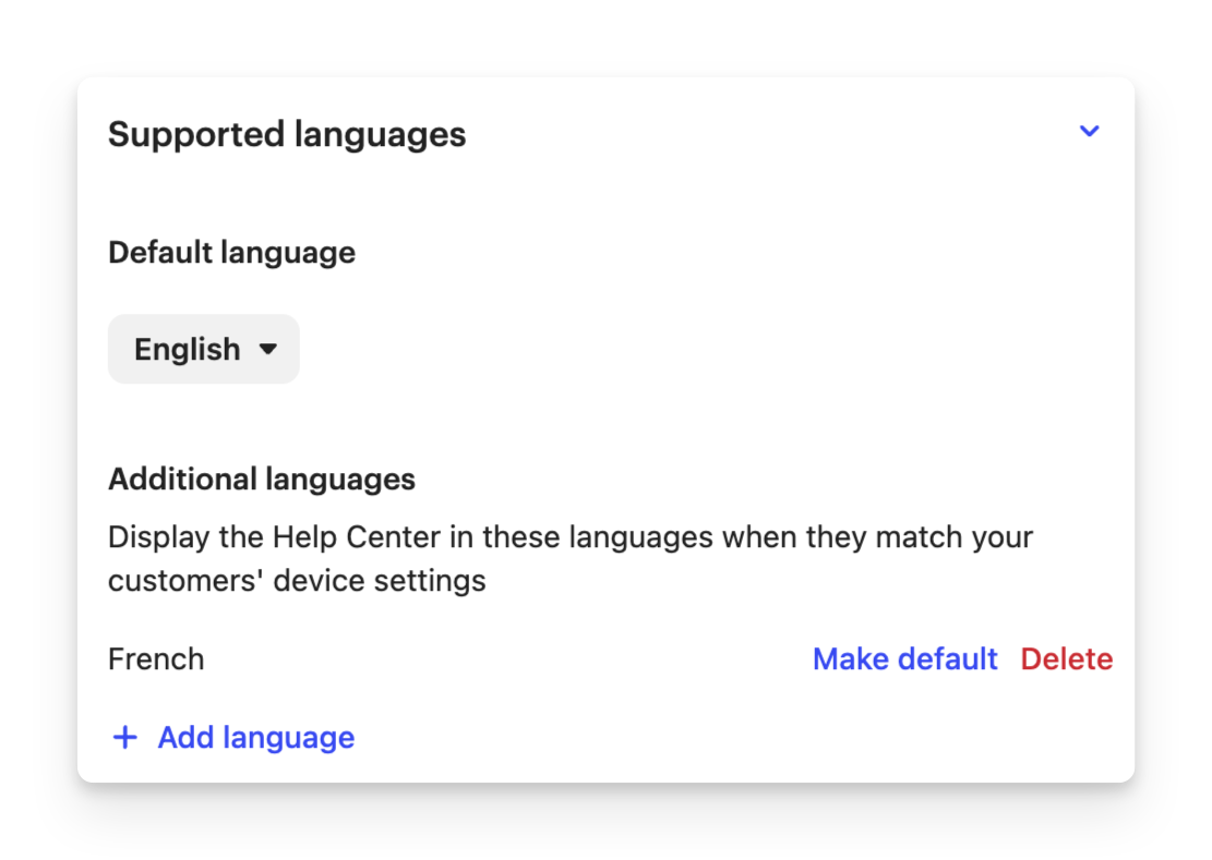 Once you choose your Default language, the user interface of your Help Center will read in the language you set. This will change the language of your: