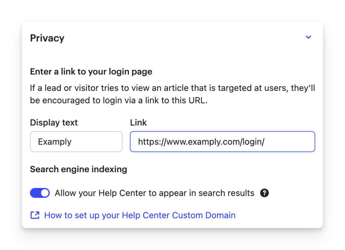 Both subdomains (e.g. help.exampleapp.io) and subpaths (e.g. exampleapp.io/help) are supported.