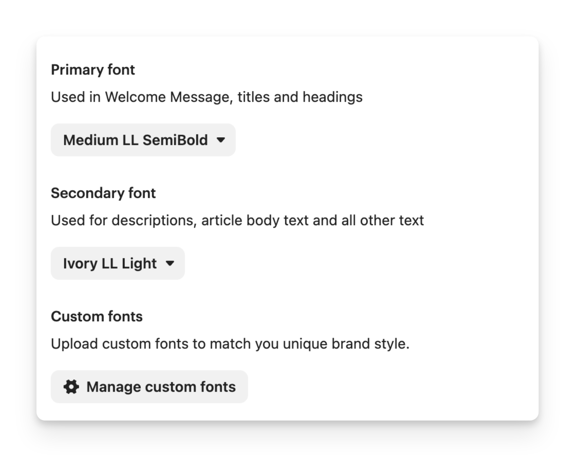 Choose from a list of preloaded Google Fonts for use in your Help Center: