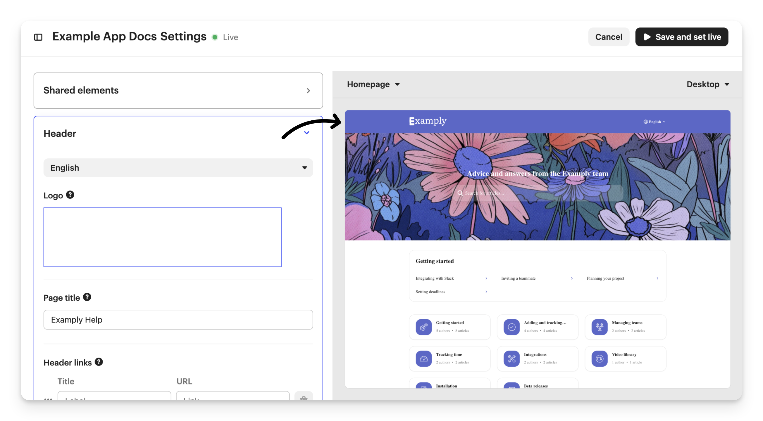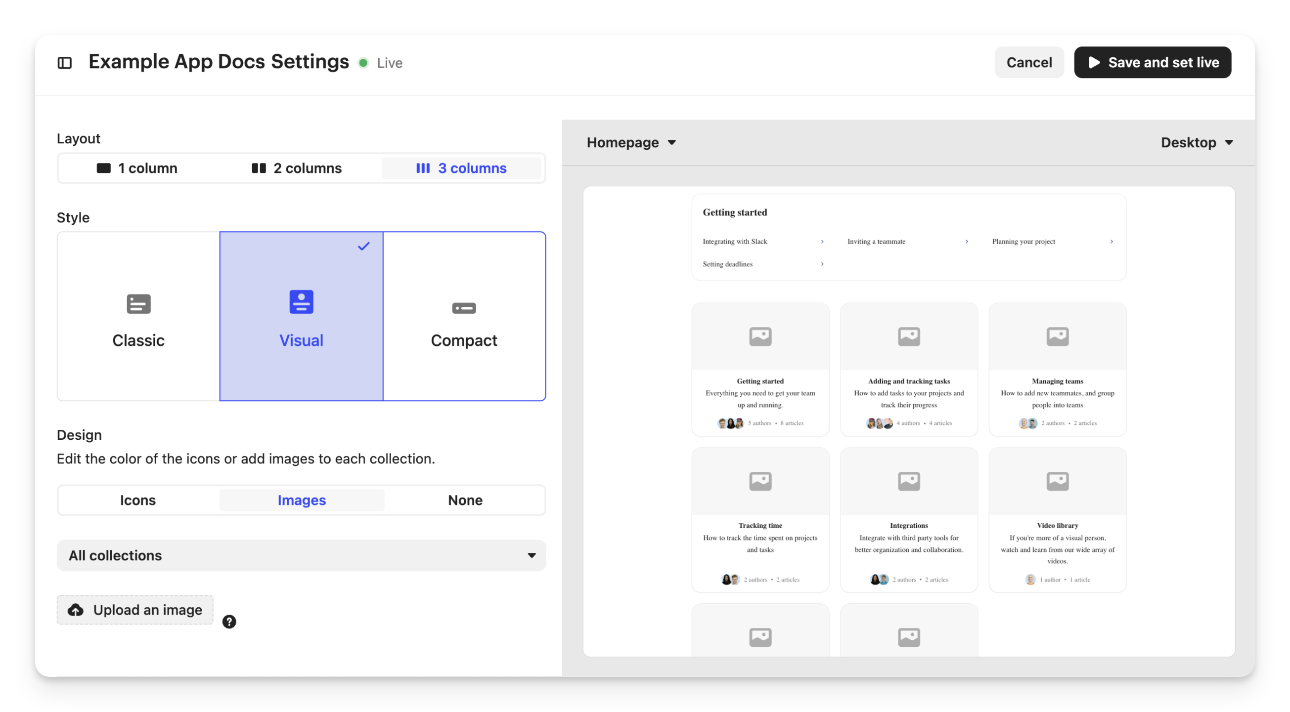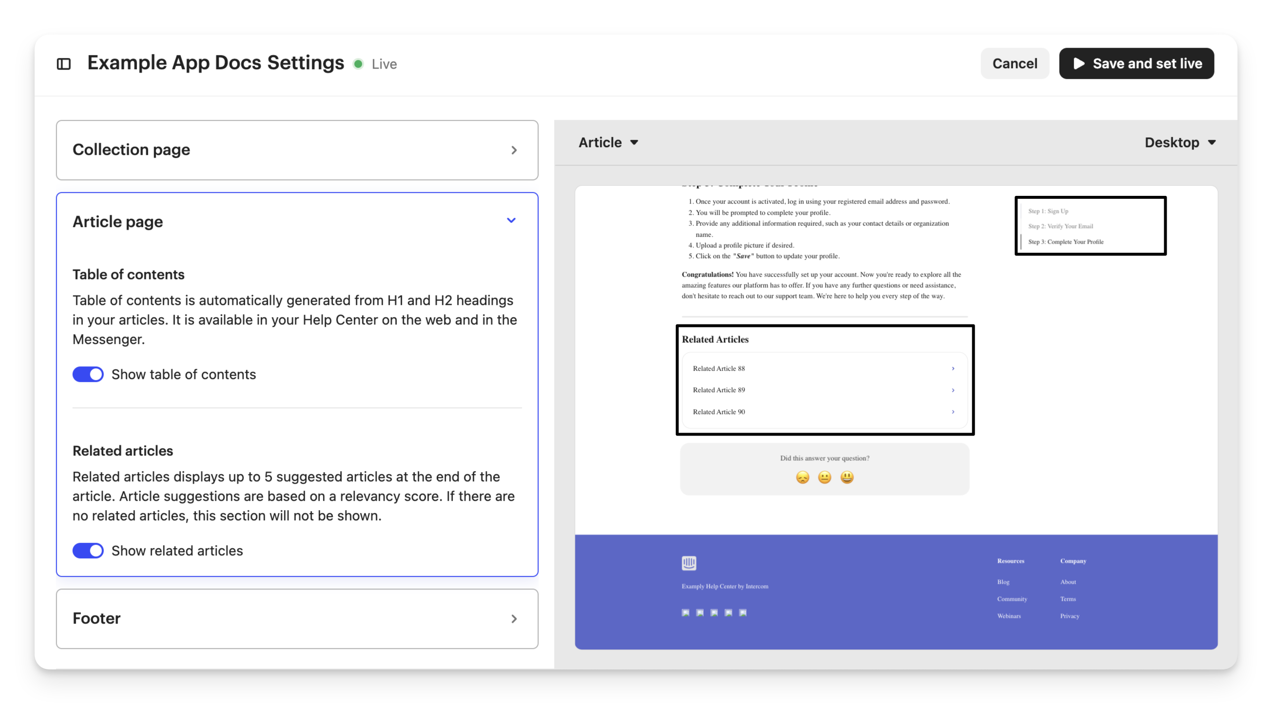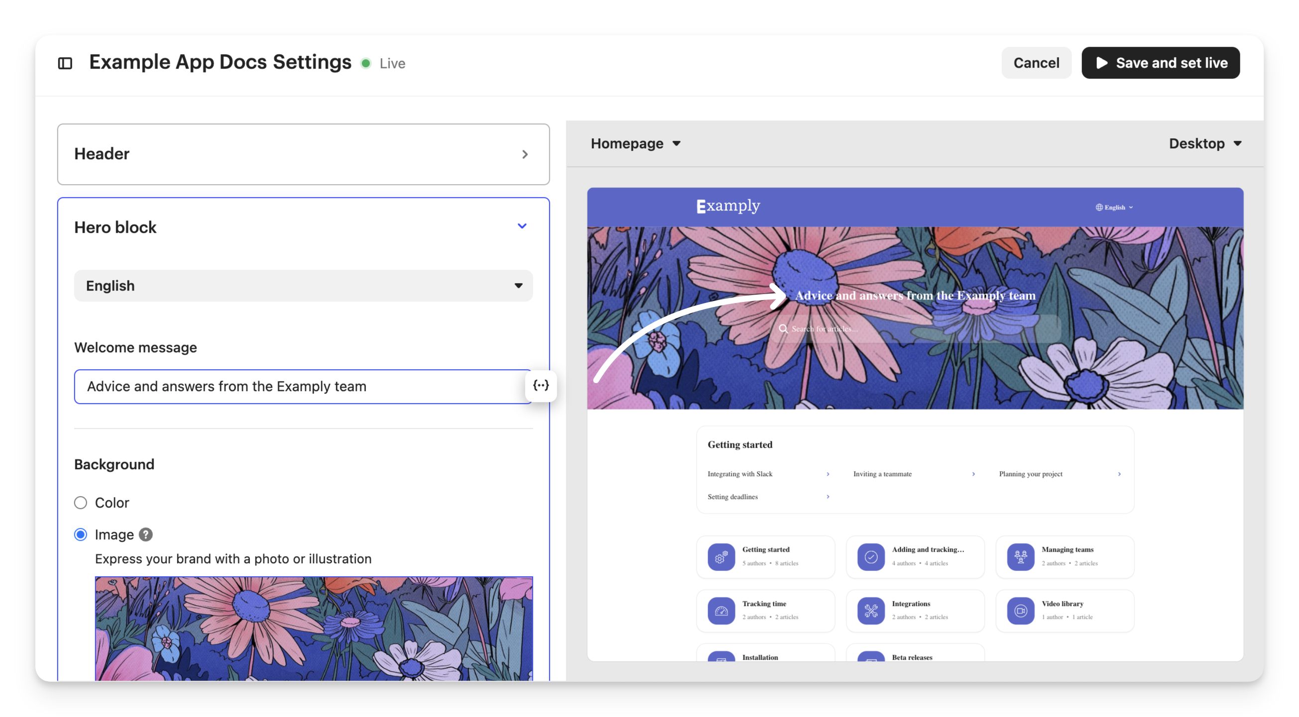 Remember to select Save and set live when you're ready to add the content section to your Help Center.
