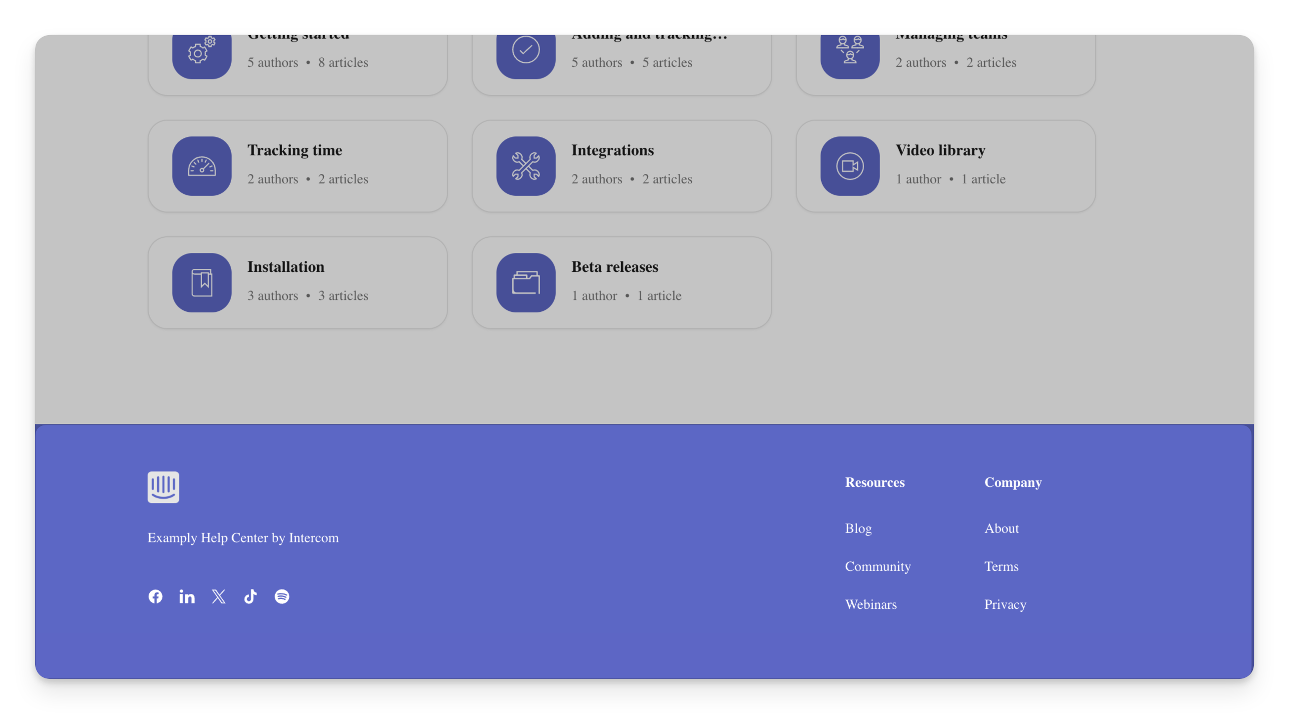 This footer will be consistent on all pages of your Help Center (homepage, collections, articles).