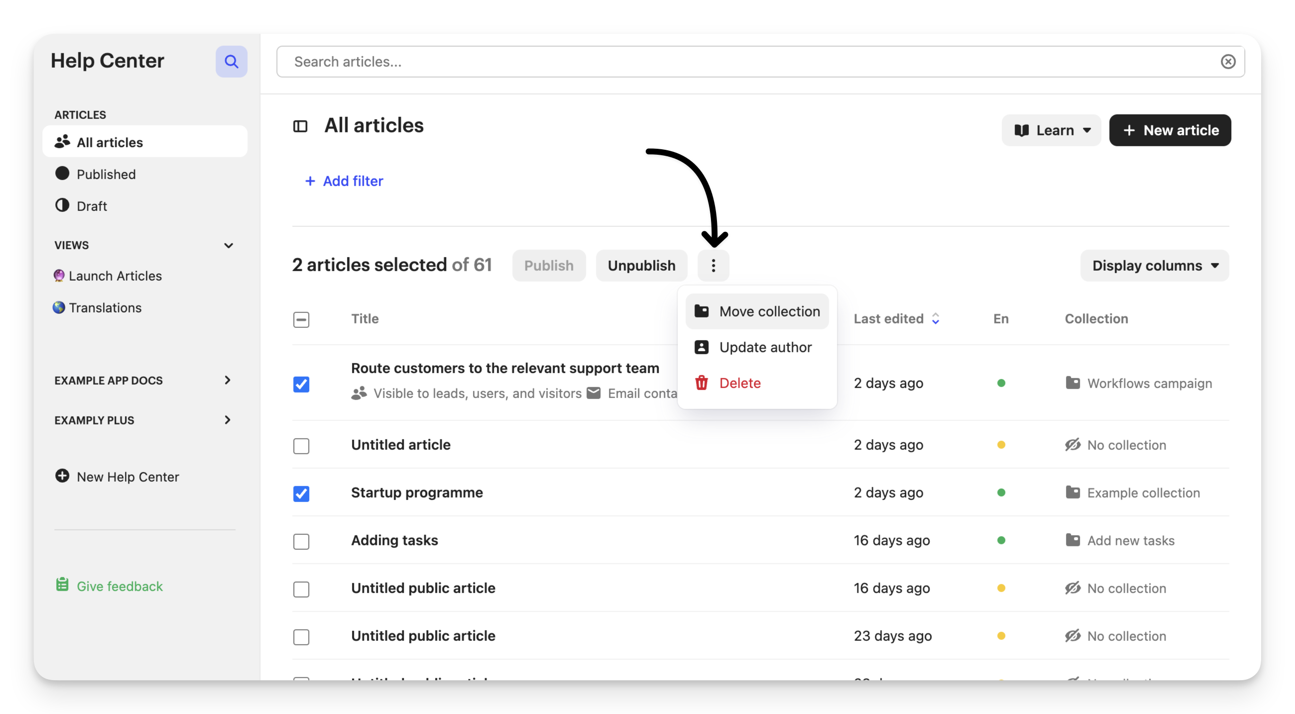 Seamless drag-and-drop - Easily move articles between collections, reorder them, and make other changes as needed. Drag-and-drop simplifies the organization process, saving you time compared to manual reorganization.