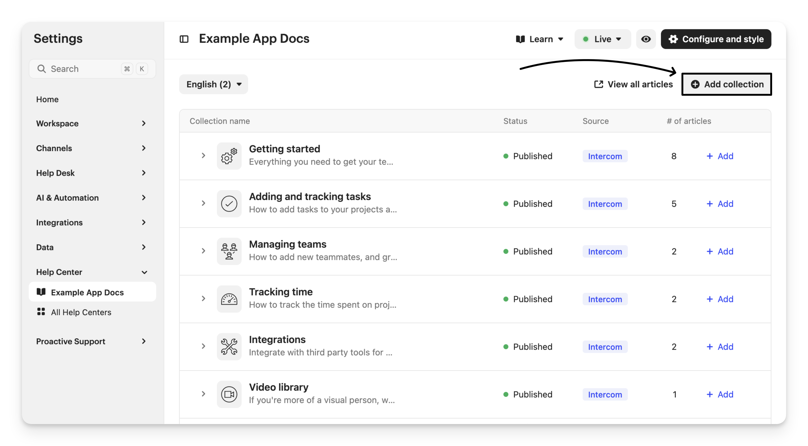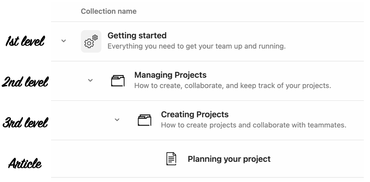 Collections are the homes for articles in your Help Center. They organize your articles so people can browse your help content and find what they want.