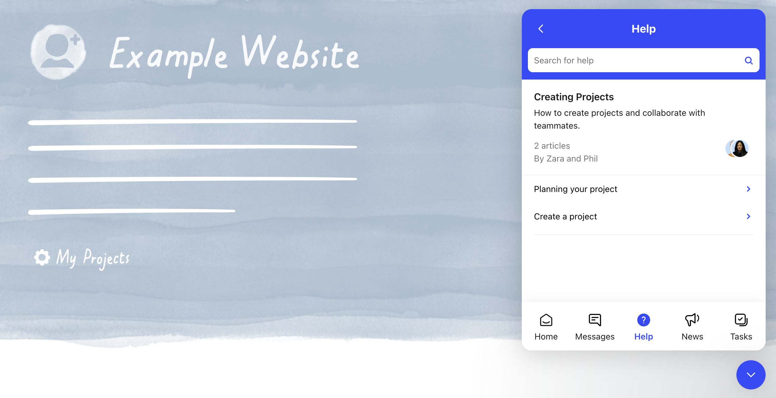 The Messenger Help Space shows the home page of your Help Center and displays:
