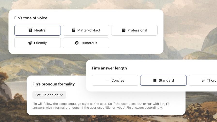 Fin can incorporate your tone of voice preferences, allowing you to choose from a selection of options like professional, friendly, humorous, and more. You can also choose how long Fin’s answers are, from shorter and concise, to longer and more thorough.