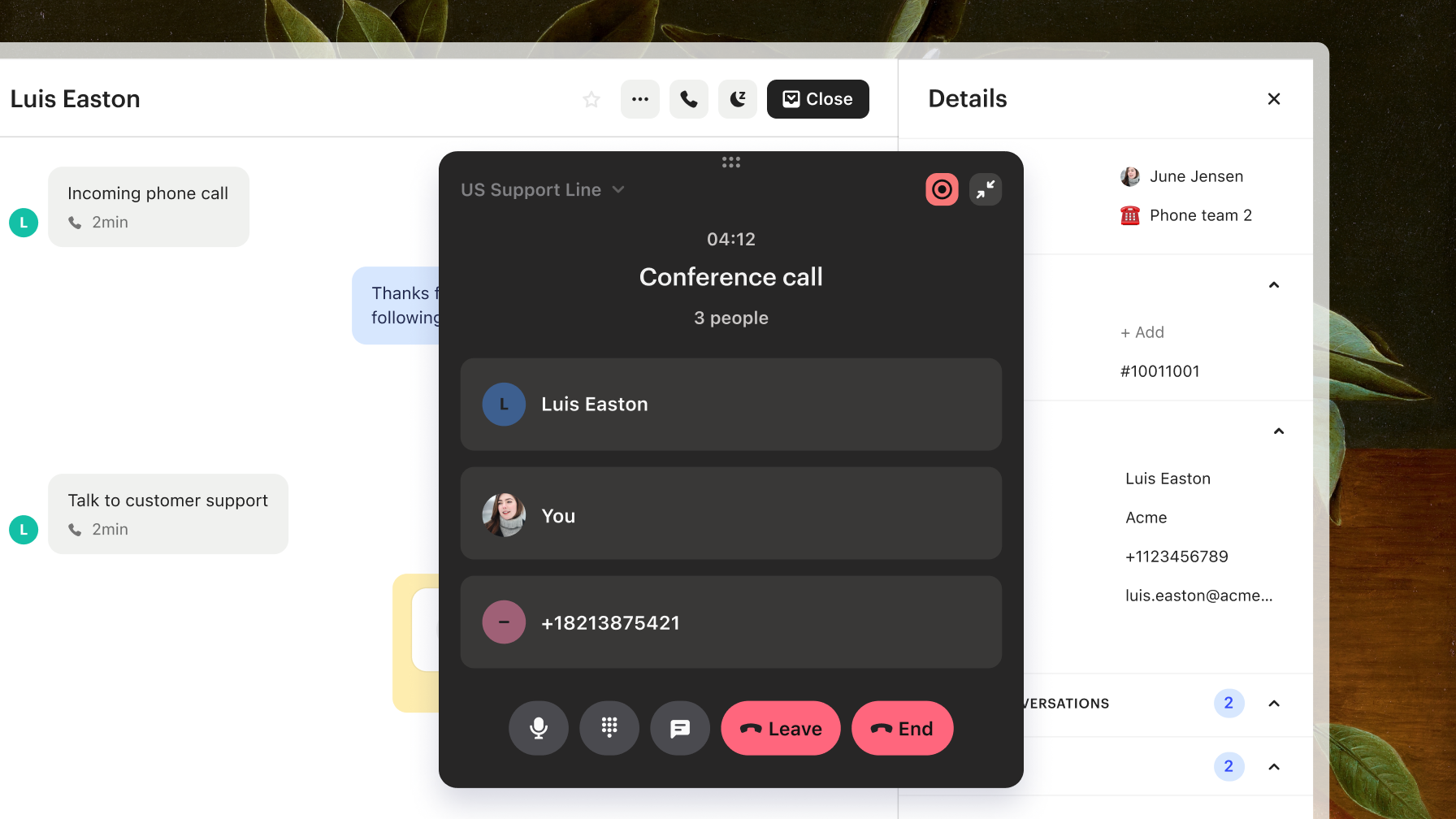 3-Way Calls: Add teammates or external numbers for quick collaboration.