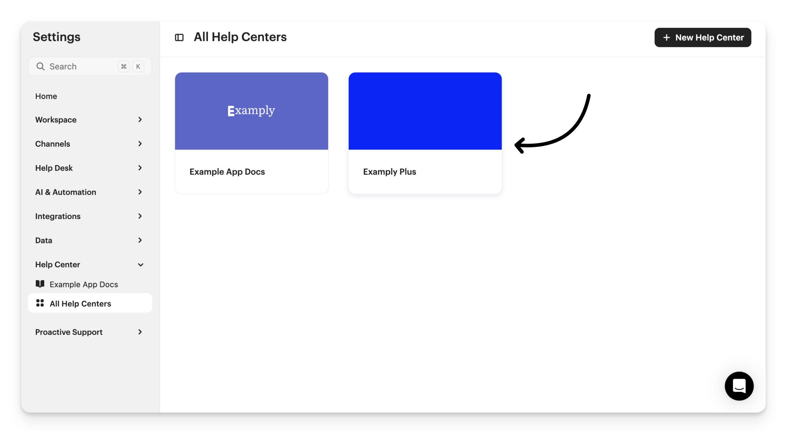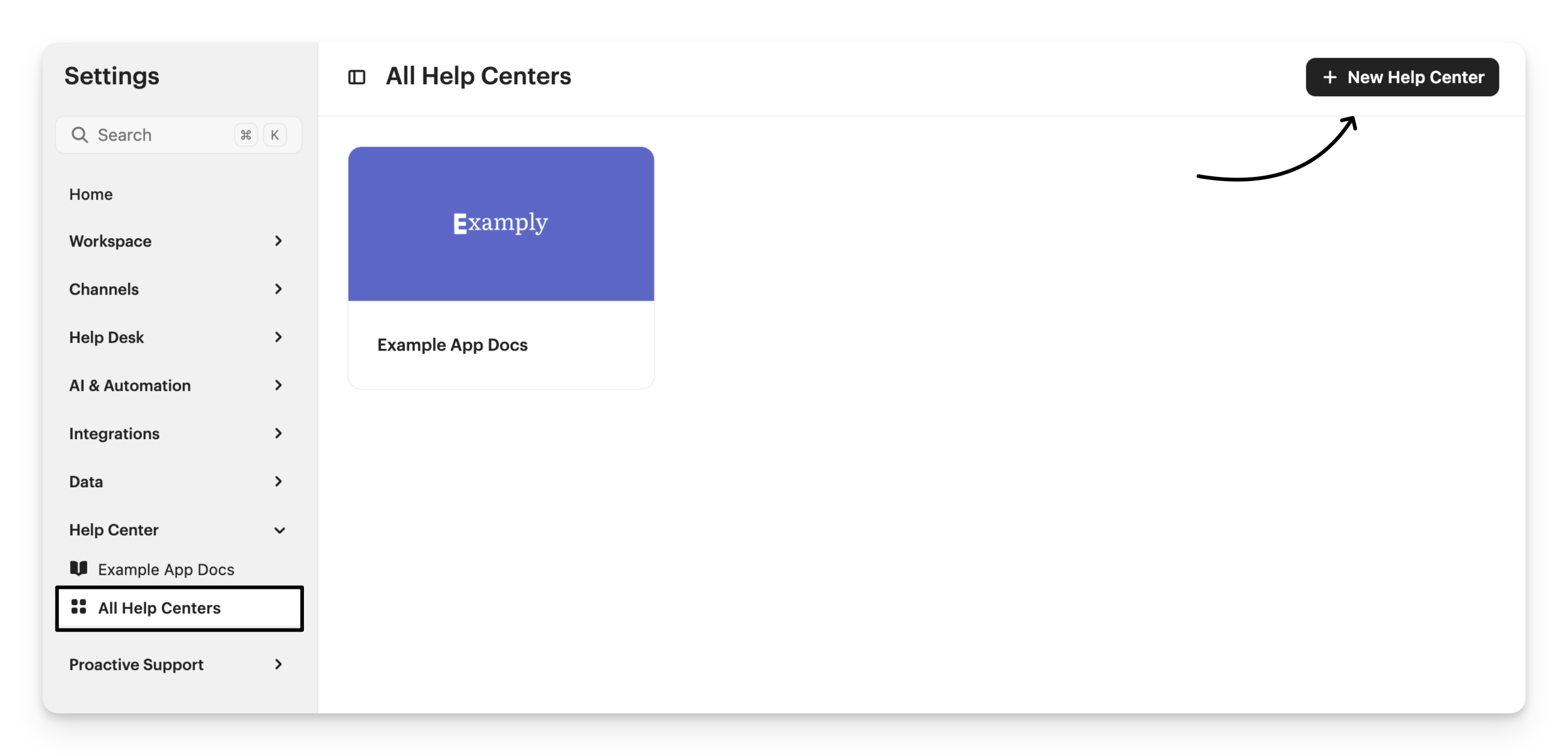 To create a new Help Center, go to Settings > All Help Centers and click + New Help Center.