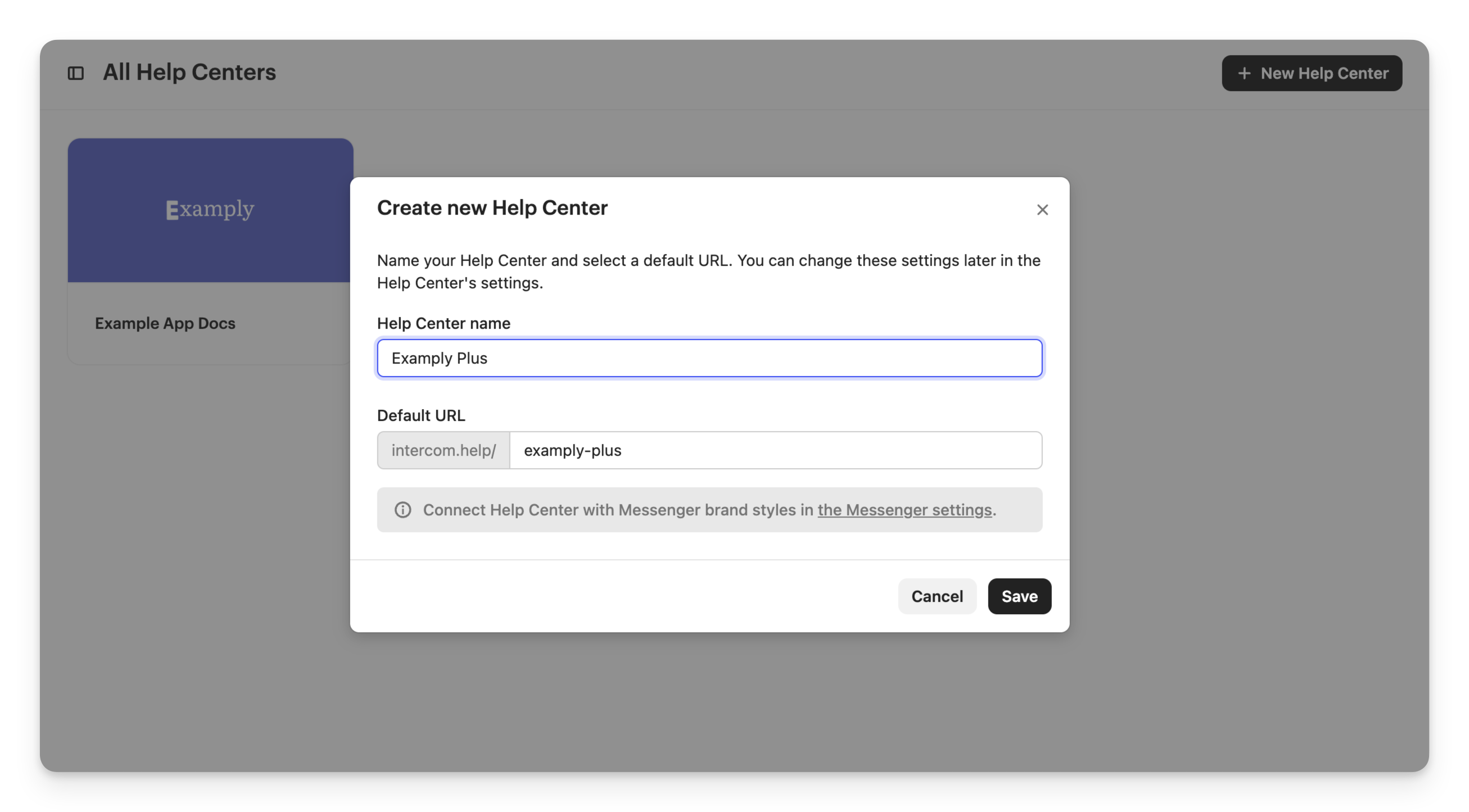 Give your new Help Center a name and choose the default URL. This name should be unique across all of your Intercom Help Centers.
