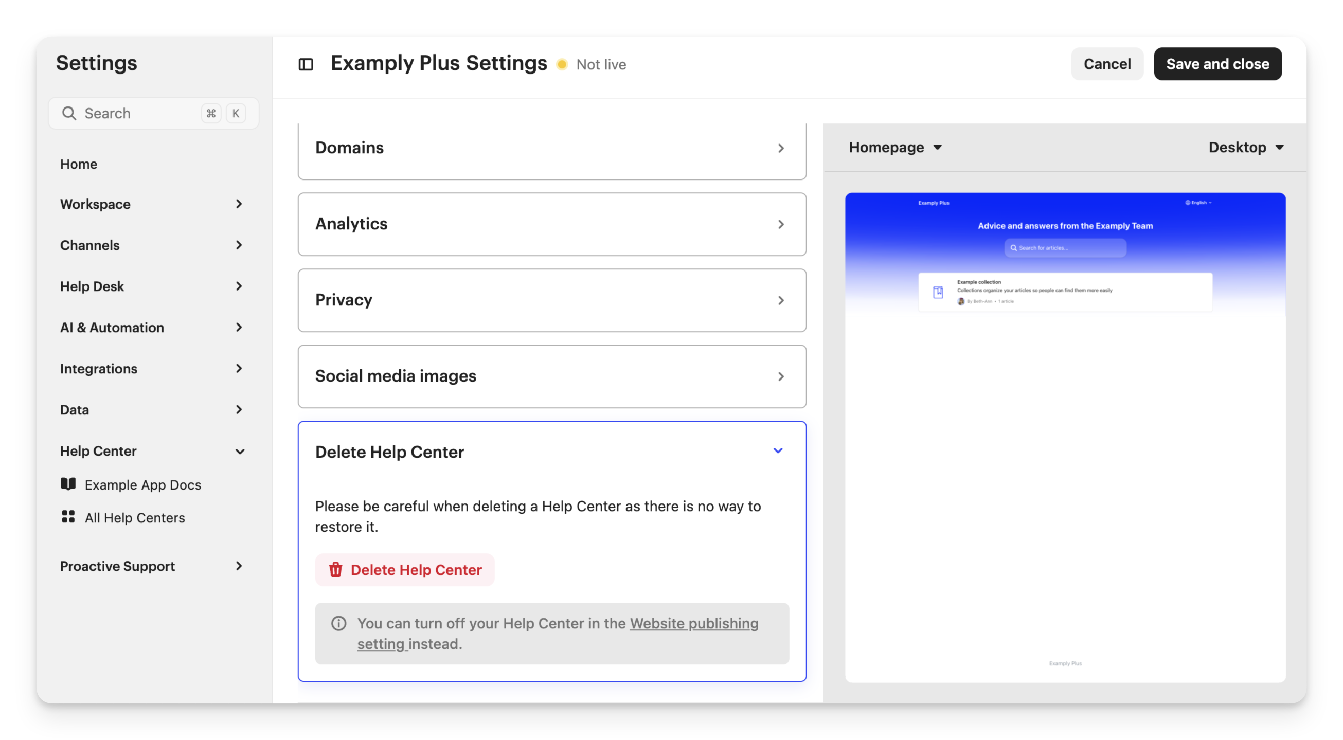 Delete a Help Center