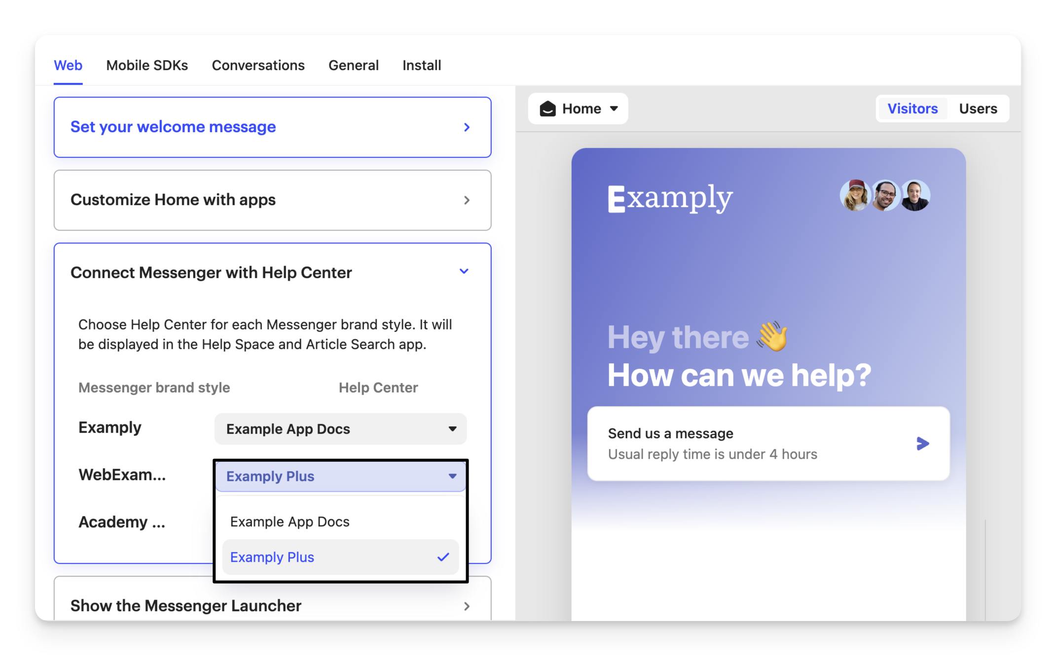 Help Centers with Messenger Brands - Link your Messenger Brand styles with dedicated Help Center content. Each Messenger Brand can provide Article suggestions from the linked Help Center.