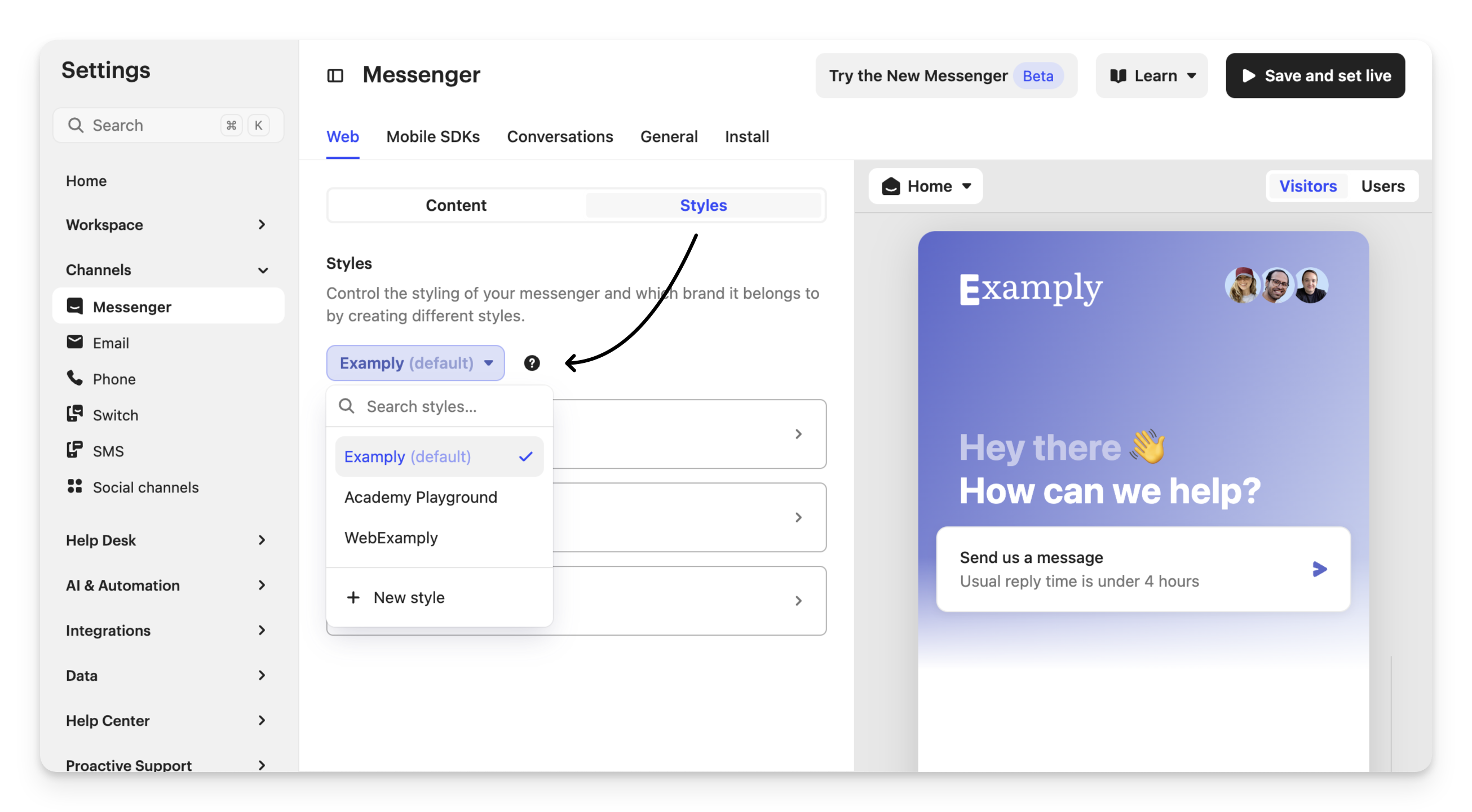 Many Messenger brand styles can be mapped to a common Help Center.