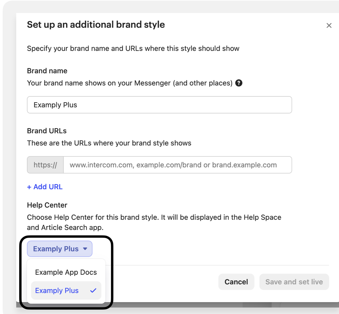 When you add a new brand, you can choose which Help Center you want this brand to use in the Messenger.