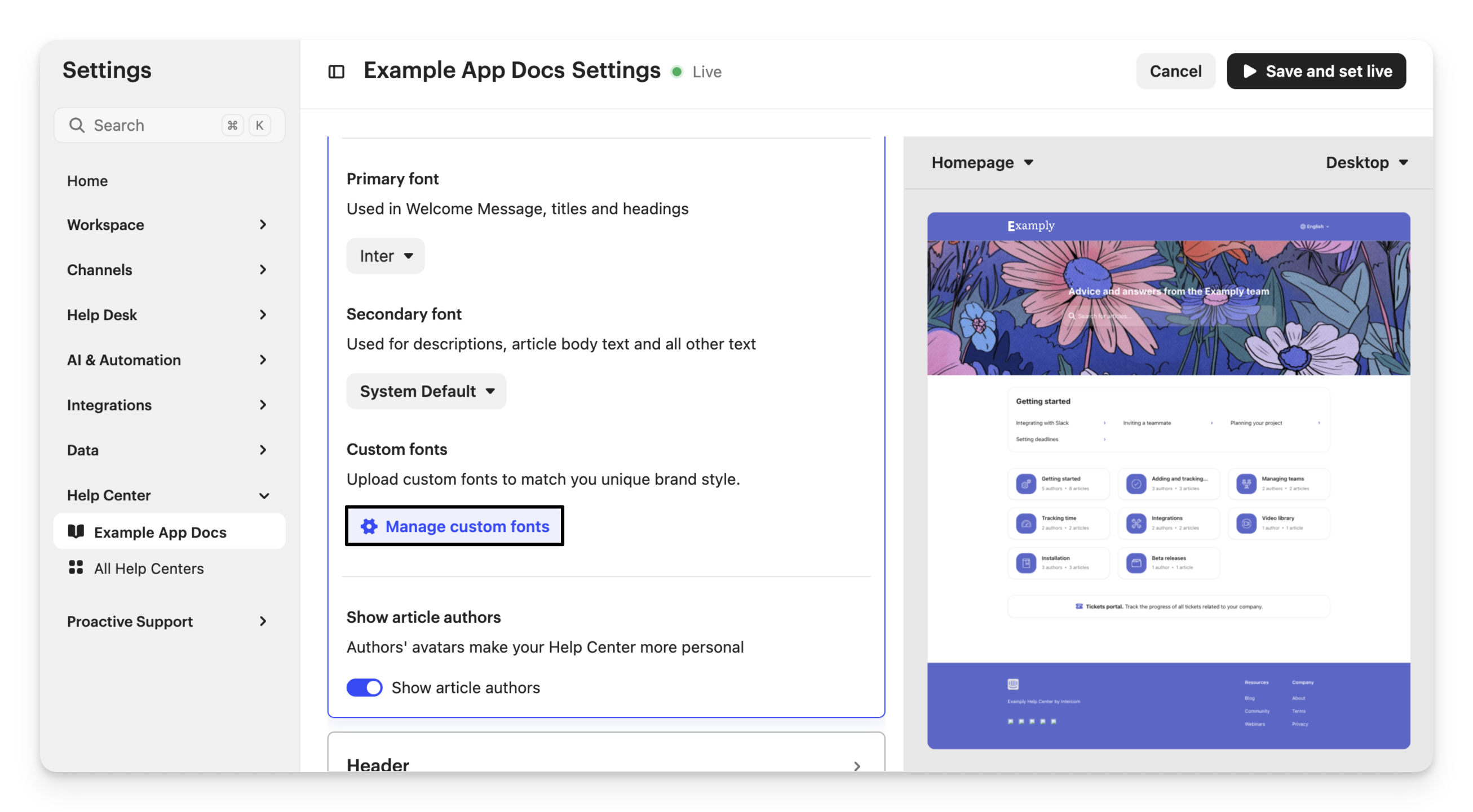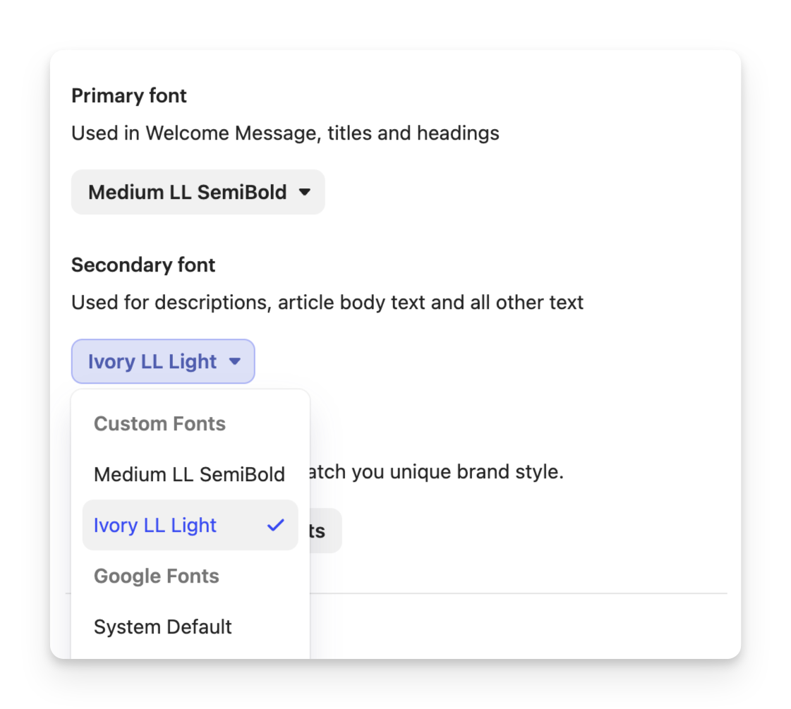With the Help Center custom font feature, you can upload your own font file to match your brand style.