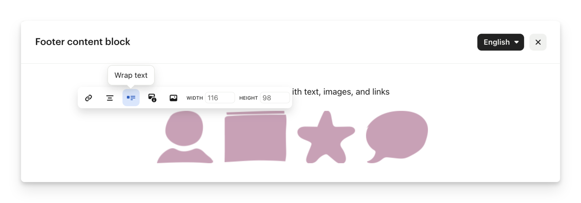 If you'd like to add multiple images in row, we recommend wrapping the images inline. Click on an image you've added to the composer and select the “Wrap text” option on the image toolbar. This also allows the images to have better responsiveness on smaller devices.