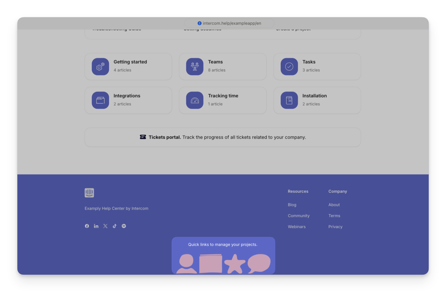 This footer will be consistent on all pages of your Help Center (homepage, collections, articles).