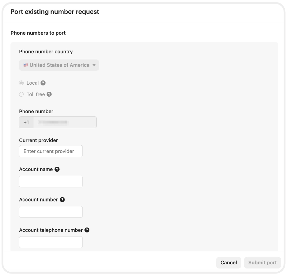 Port existing phone number