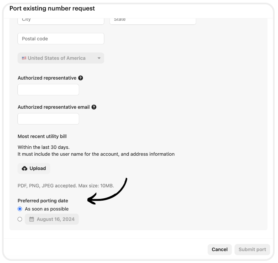 We’ll also need to collect some additional information from you to allow us to port your number.