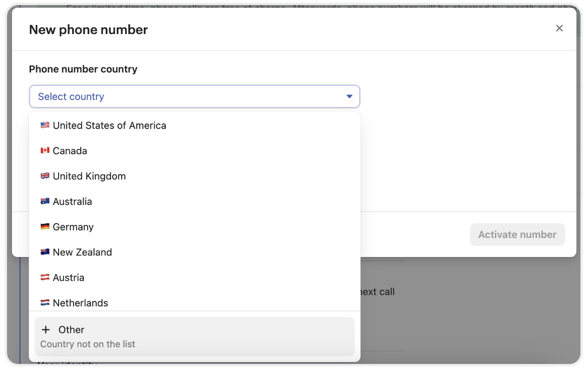 Australia, Austria, Germany, Netherlands, and New Zealand require approved regulatory information before it’s possible to purchase a phone number. You’ll need to submit regulatory bundles and wait for approval in these countries.