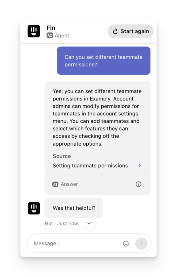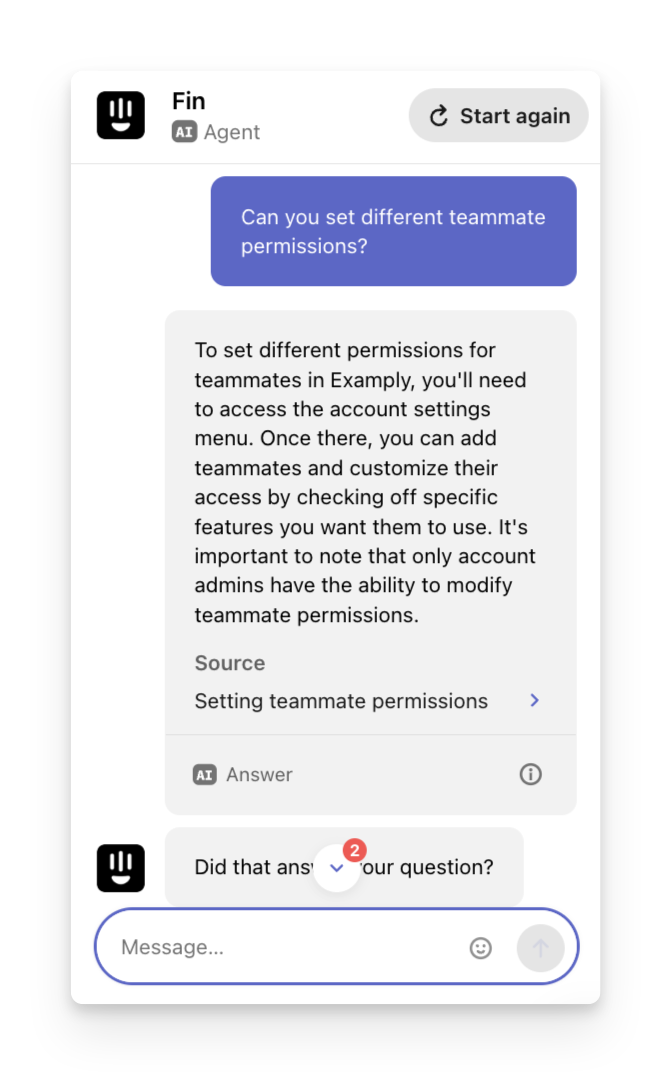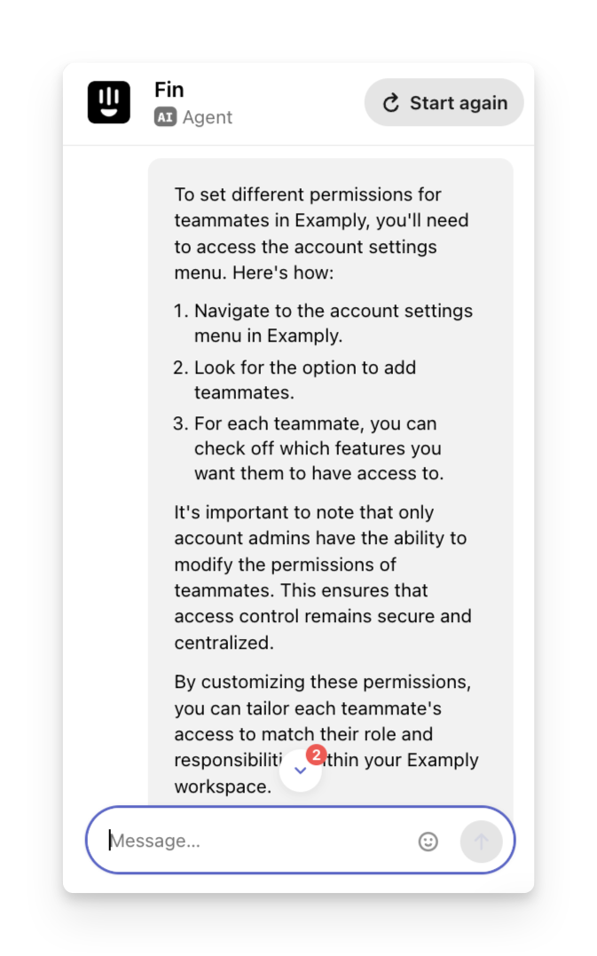 Here are some examples of answer length when asking Fin "Can you set different teammate permissions?"
