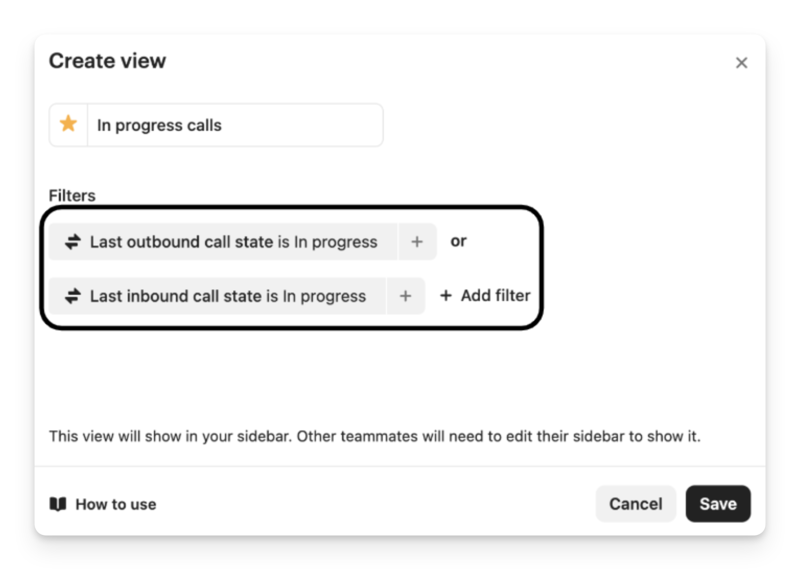 To make it easier to access all calls currently in progress, create a specific view for those conversations in your inbox.