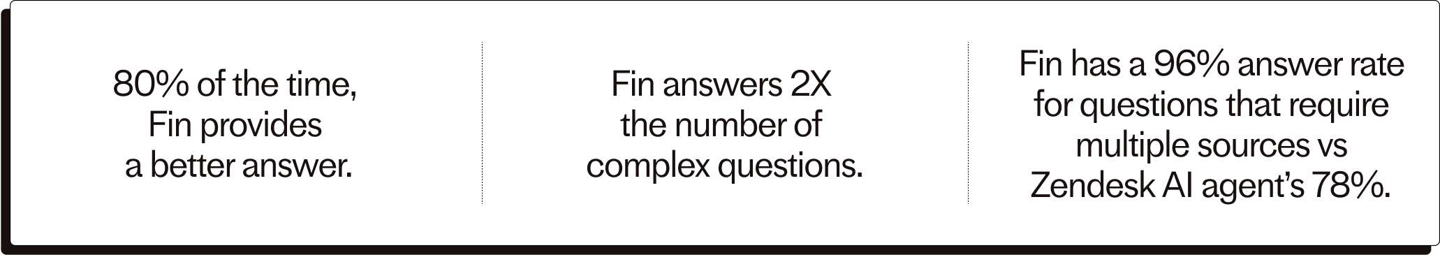 “Fin can handle twice the number of complex questions Zendesk’s AI agent can, transforming what’s possible with automated support”