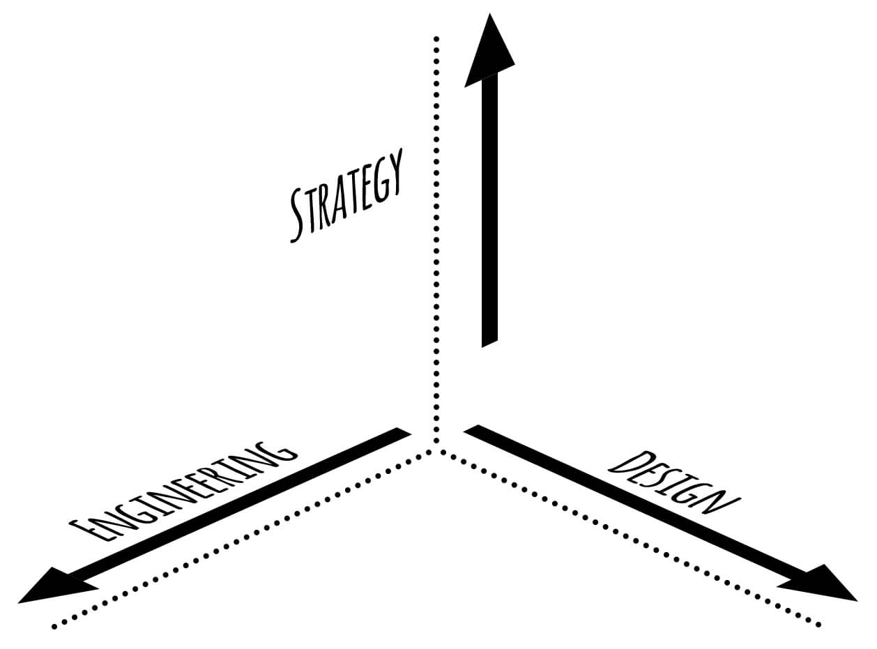 When I think about product, I think that there are three core pillars that it’s built upon: engineering, design and strategy. I think of these as the dimensions of products. A really great product will be strong in each dimension. It’ll have a smart strategy, it’ll be well built and it’ll be easy to use and understand.