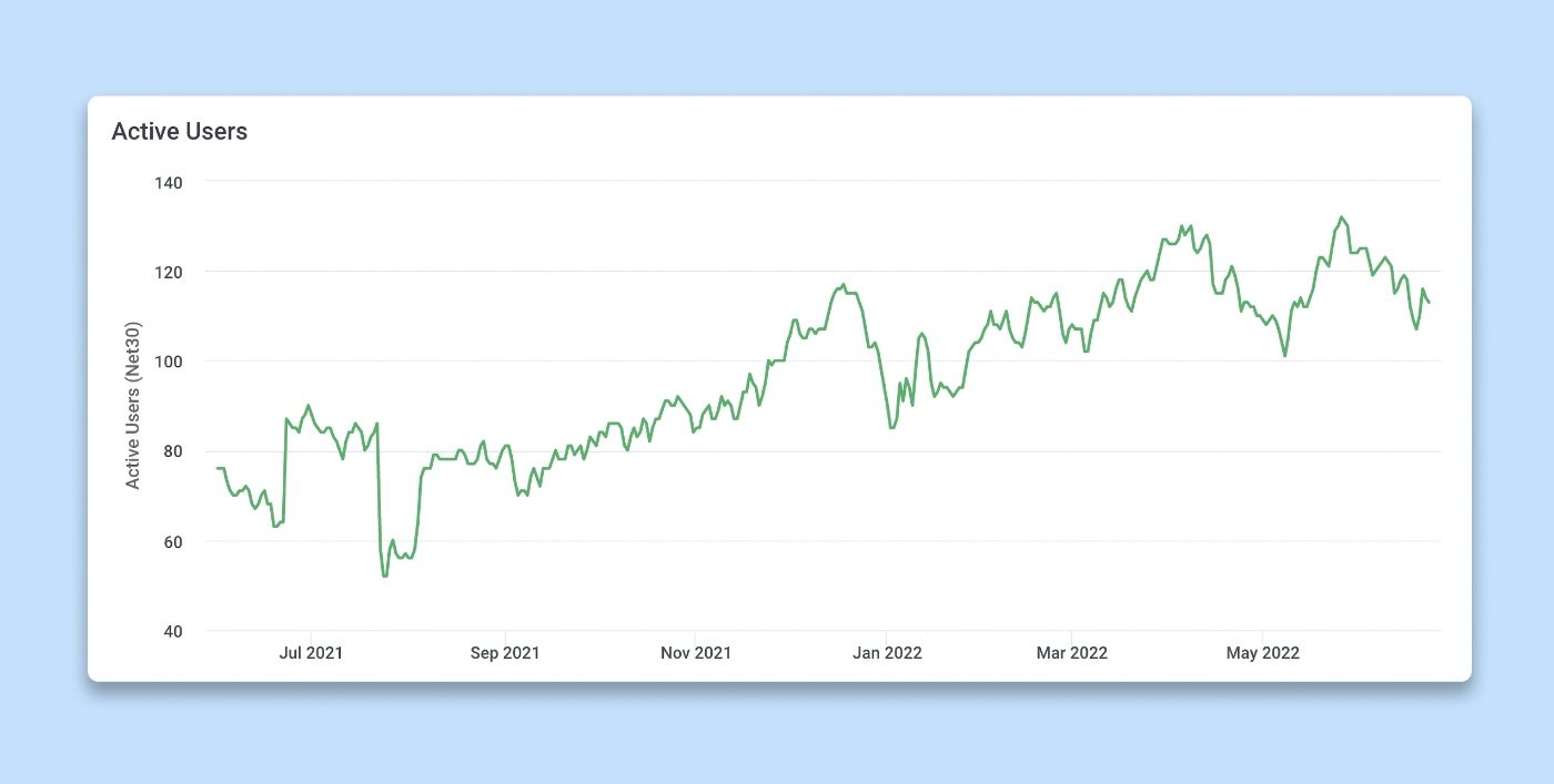 This chart shows the increase in the number of active Honeycomb users since observability enablement began