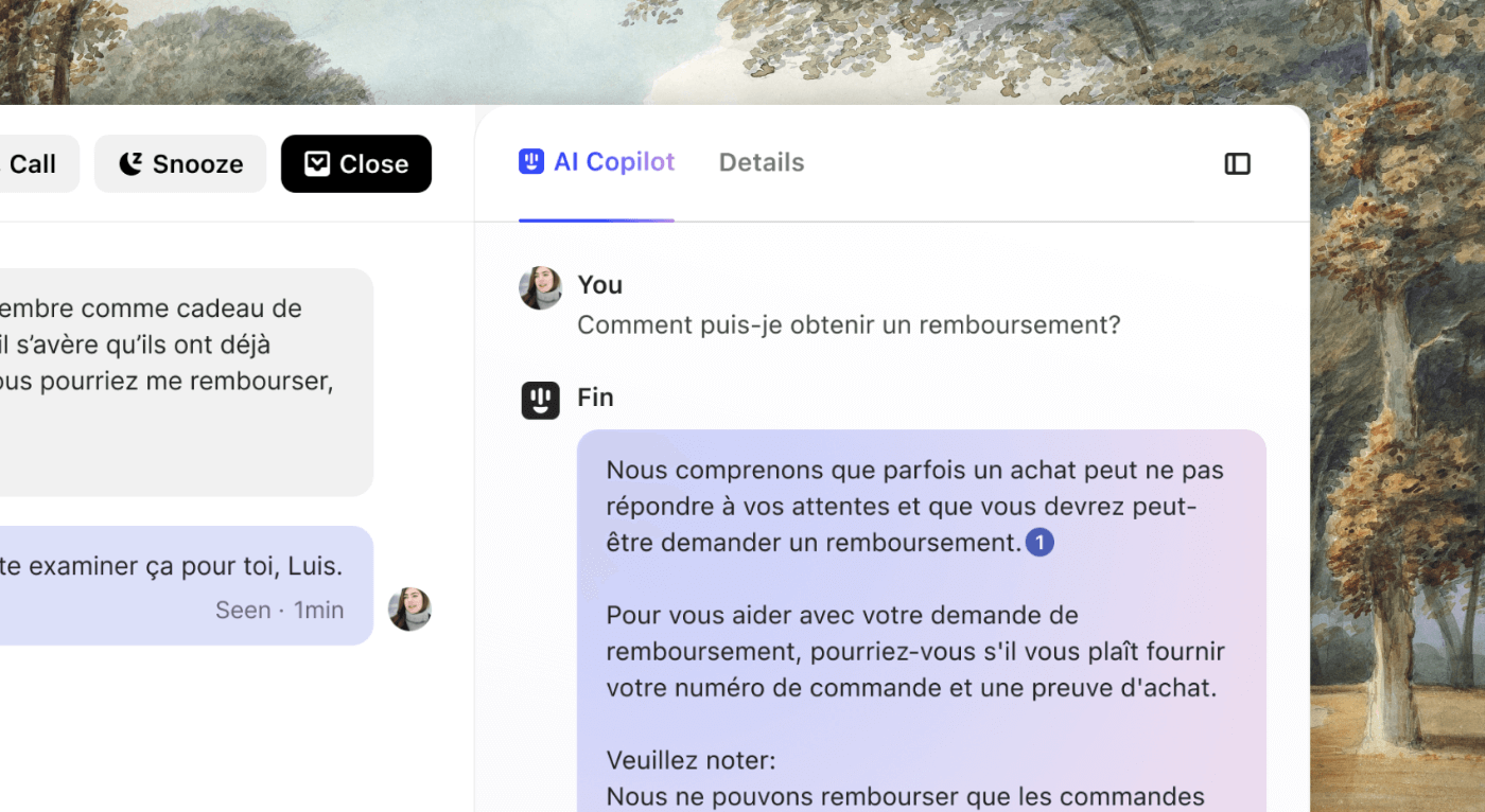 Fin AI Copilot can also provide multilingual support in the same 45 languages as Fin AI Agent – from Arabic, to French, to Japanese, and more.