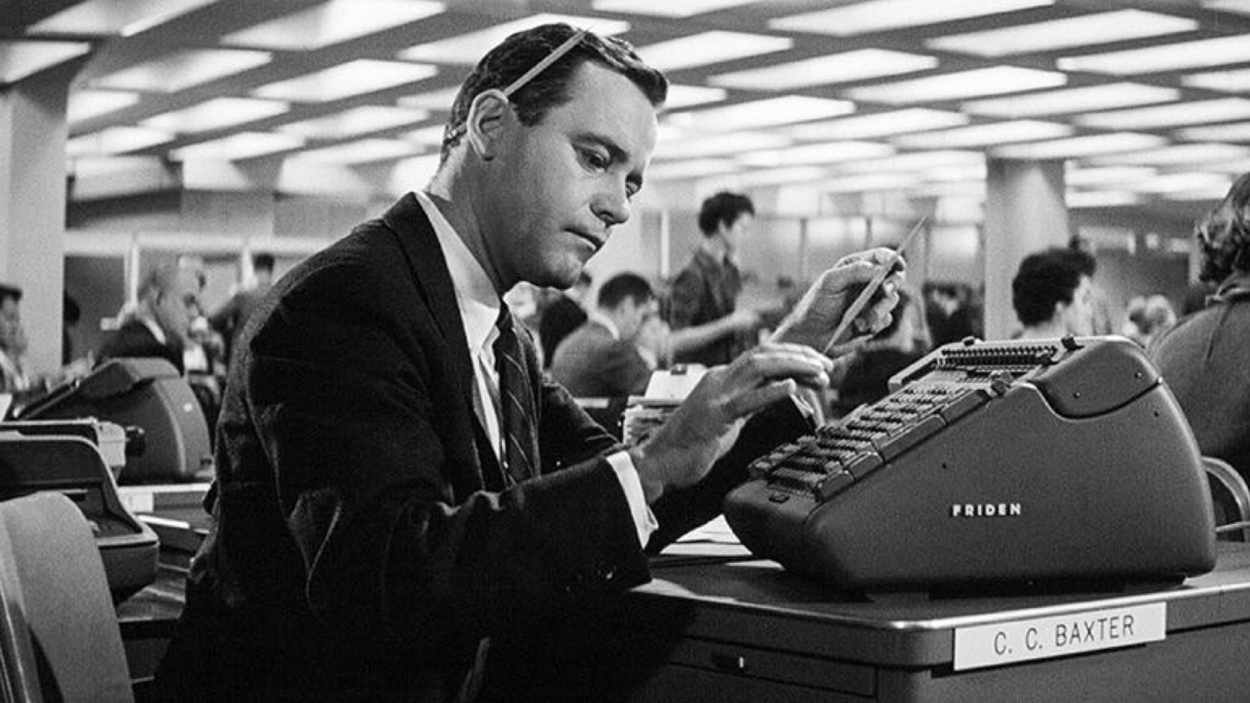 This is Jack Lemmon in 1960 in a movie called The Apartment, and he works as a clerk in an insurance company in a building in midtown Manhattan. He has a typewriter and a Rolodex and a thing called an electromechanical adding machine. And so, he gets given a calculation, he does the calculation on the machine, he puts it in a typewriter, he types it up, he puts it in an internal mail envelope – I’m actually old enough that I know what an internal mail envelope is; all the younger people in the room ask your older colleagues – and then it goes off to somebody else.