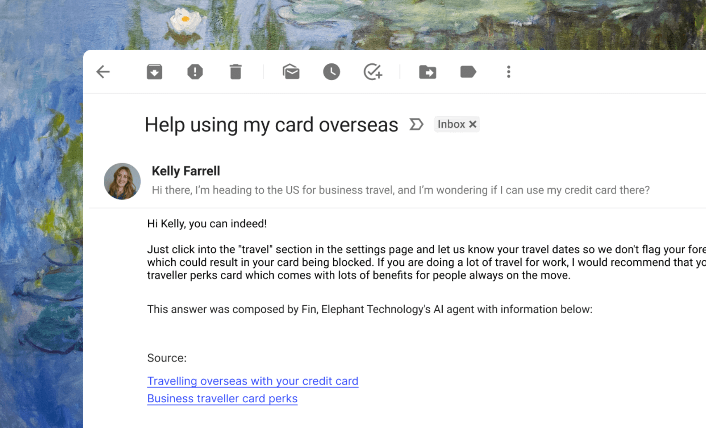 And just like with the Messenger, Fin can seamlessly hand off queries to your agents to ensure the most complex issues are handled with care.