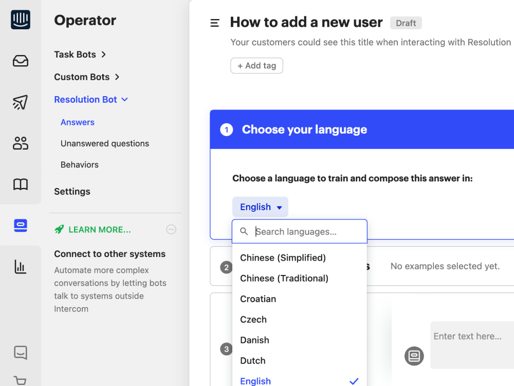 Support your customers on an international scale as Resolution Bot now provides answers in 38 languages. Last month, we added five new languages to Resolution Bot answers including Chinese (Simplified and Traditional), Japanese, Korean, and Vietnamese.