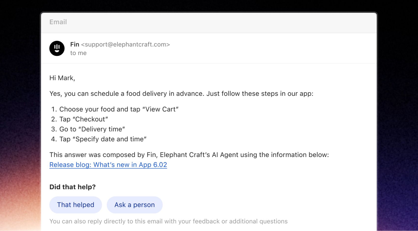 Earlier, I mentioned that AI in Fin is not a chat tool. It’s an omnichannel tool. This all works in email as well.