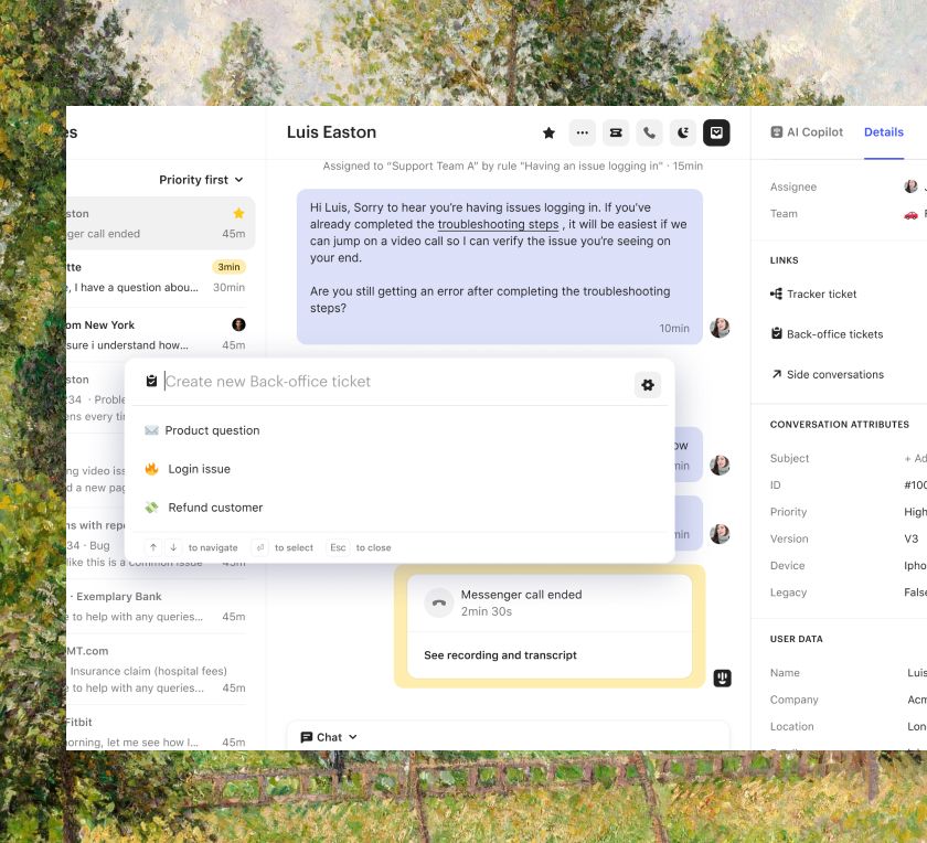 We’ve just launched improvements to Phone – now you can use an outbound dialer from the Inbox, reroute calls and let customers request a call back, and capture CSAT after the call ends. These new features are as intuitive and easy-to-use as you’d expect from Intercom.